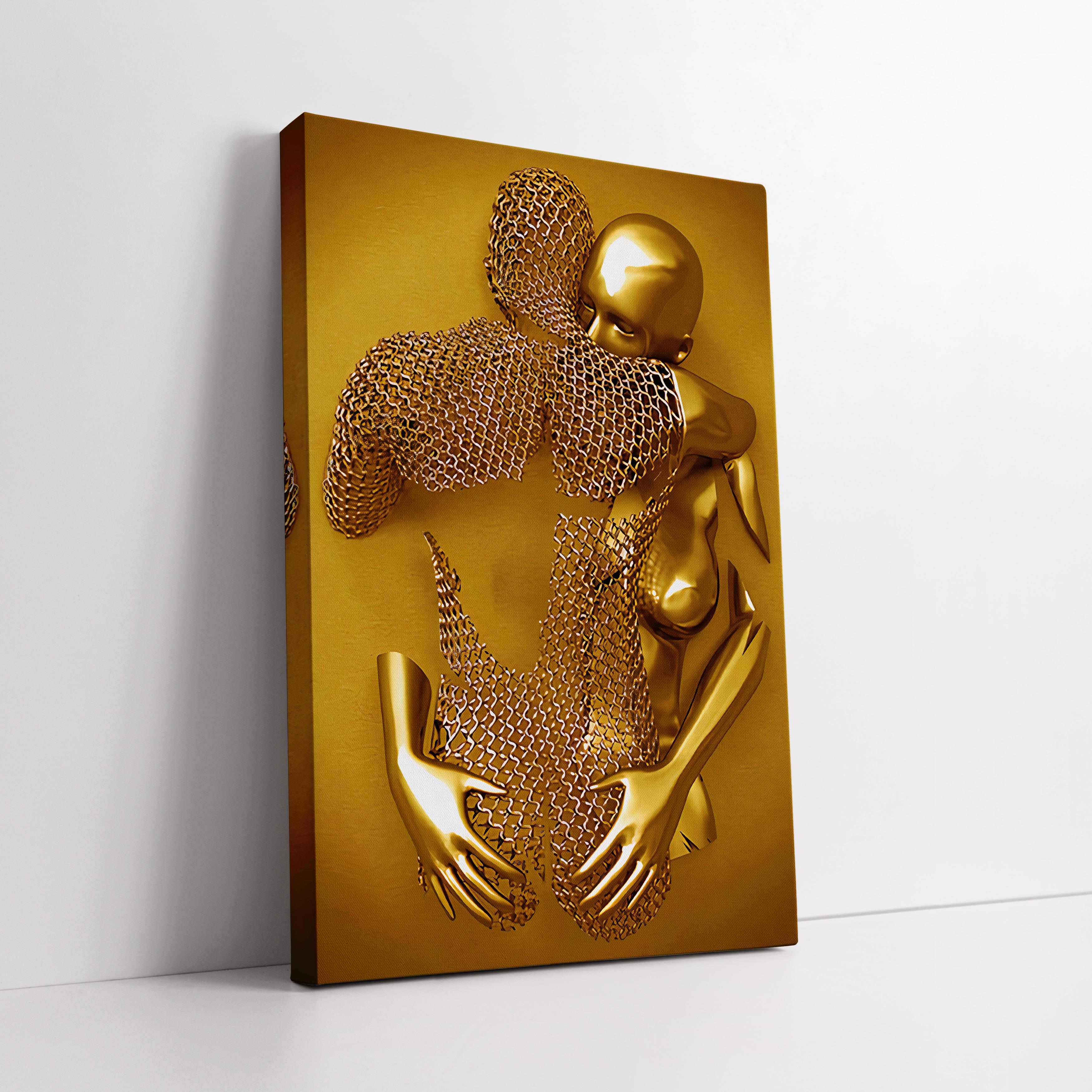 Altın Sarısı Aşk Figür Kanvas Tablo (KSS-D-94)