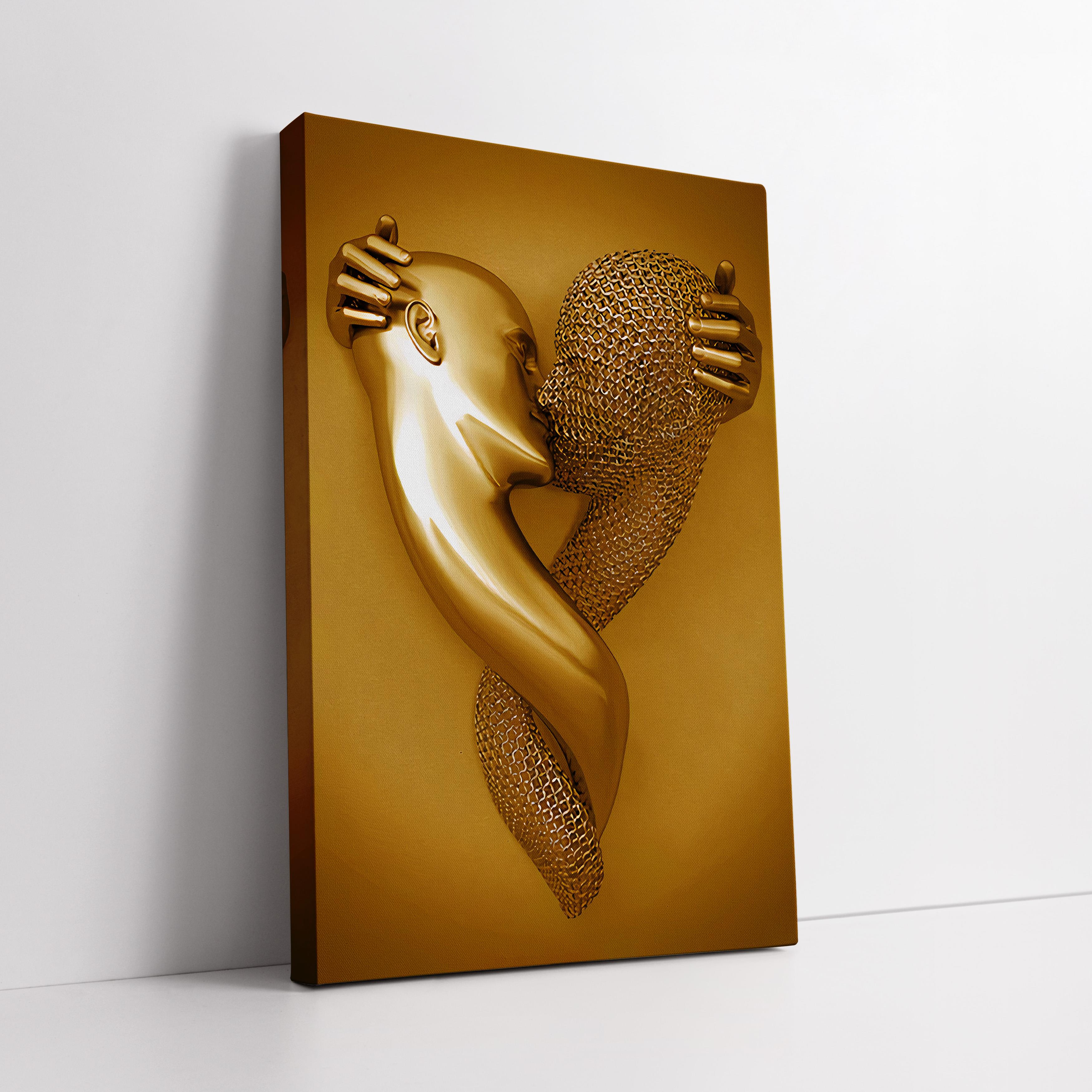 Altın Sarısı Romantik Öpüşme Kanvas Tablo (KSS-D-95)