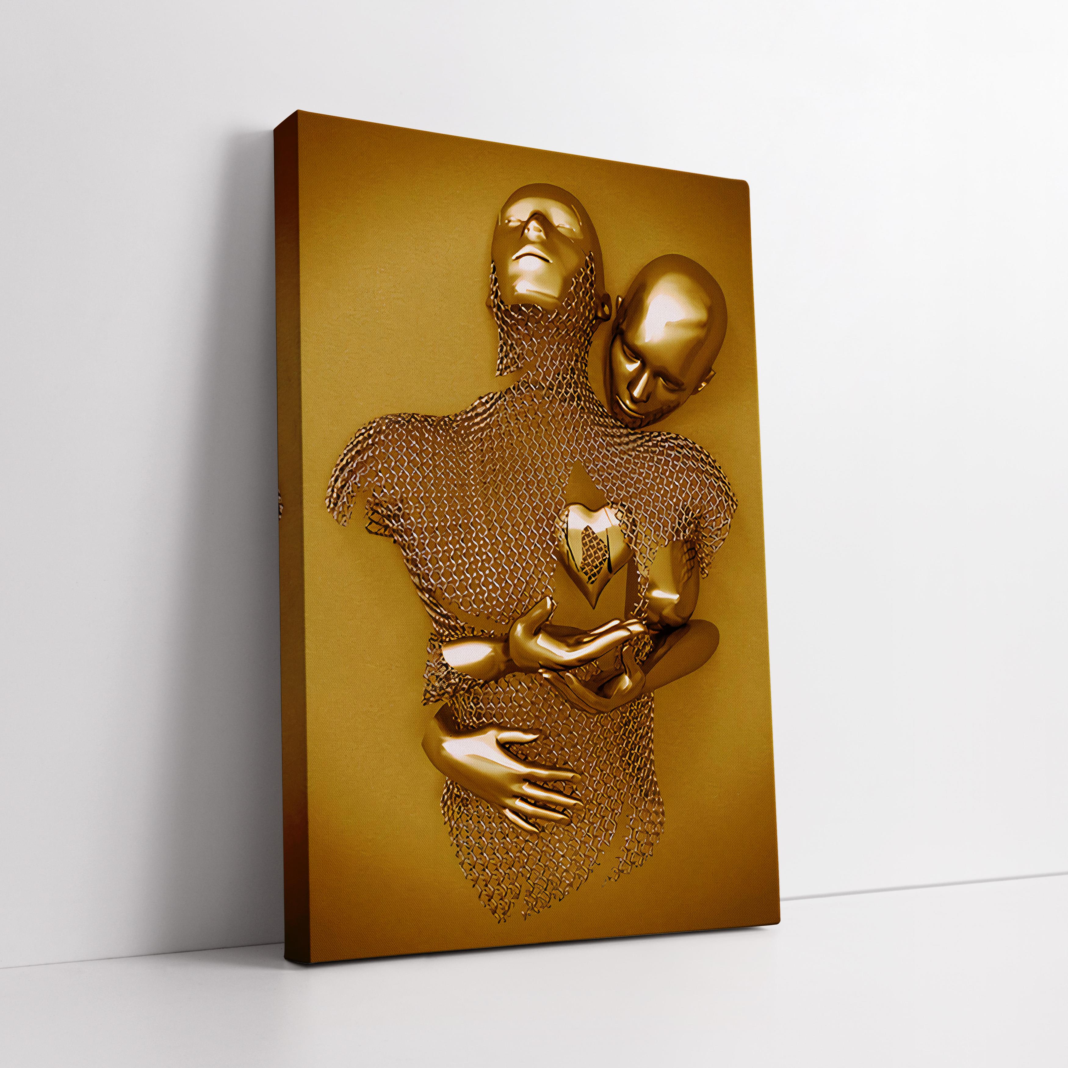 Altın Sarısı Romantik Sarılma Kanvas Tablo (KSS-D-93)