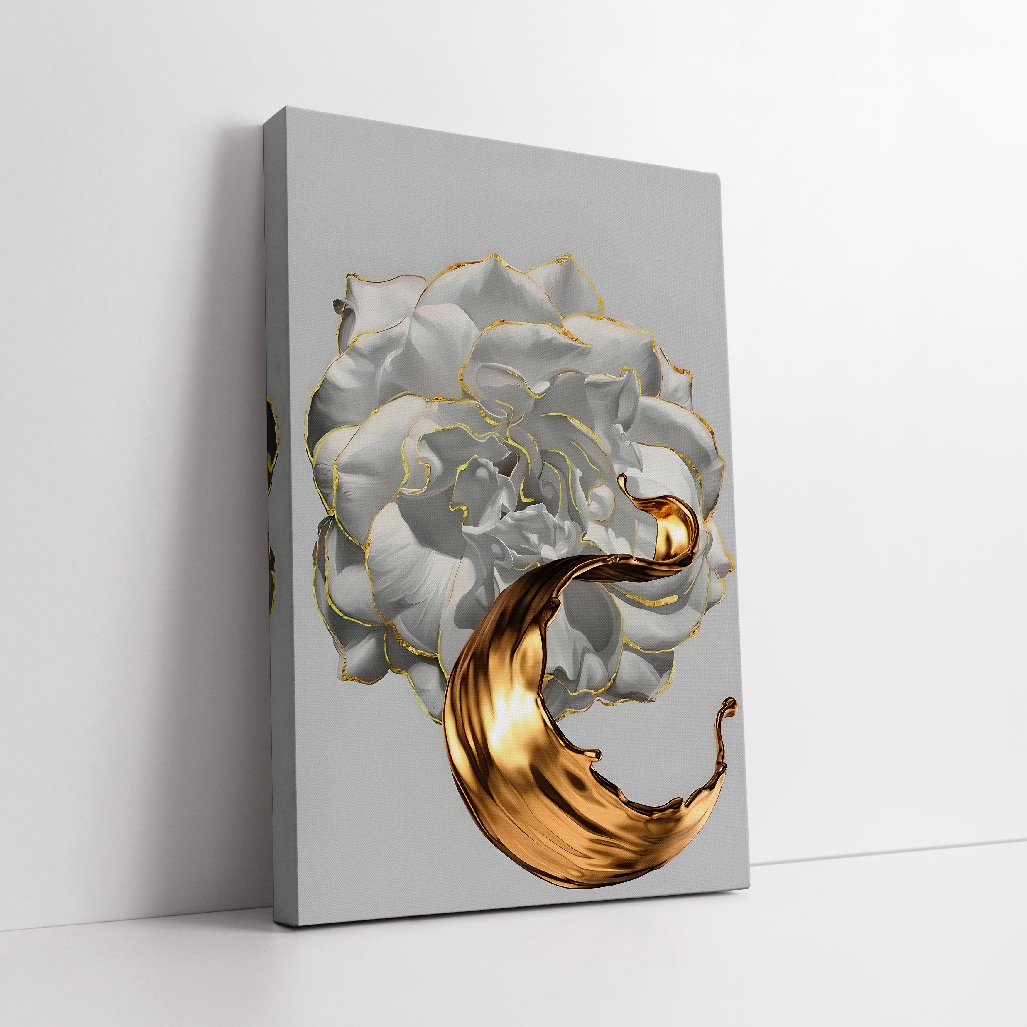 Altın Yaldızlı Beyaz Gül Kanvas Tablo (KSS-D-106)
