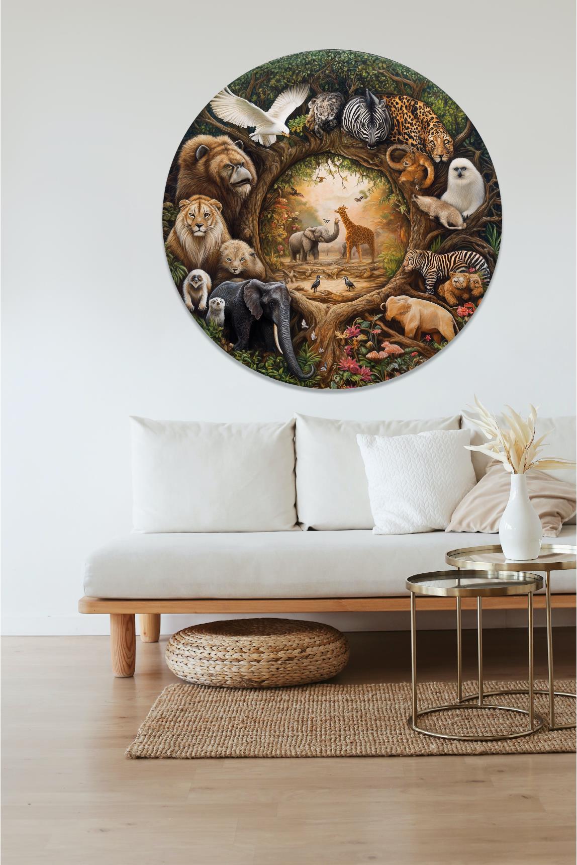 Amazon Hayvanları Yuvarlak Sticker, Yuvarlak Şekilli Sticker, Soyut Hayvanlar Duvar Dekoru