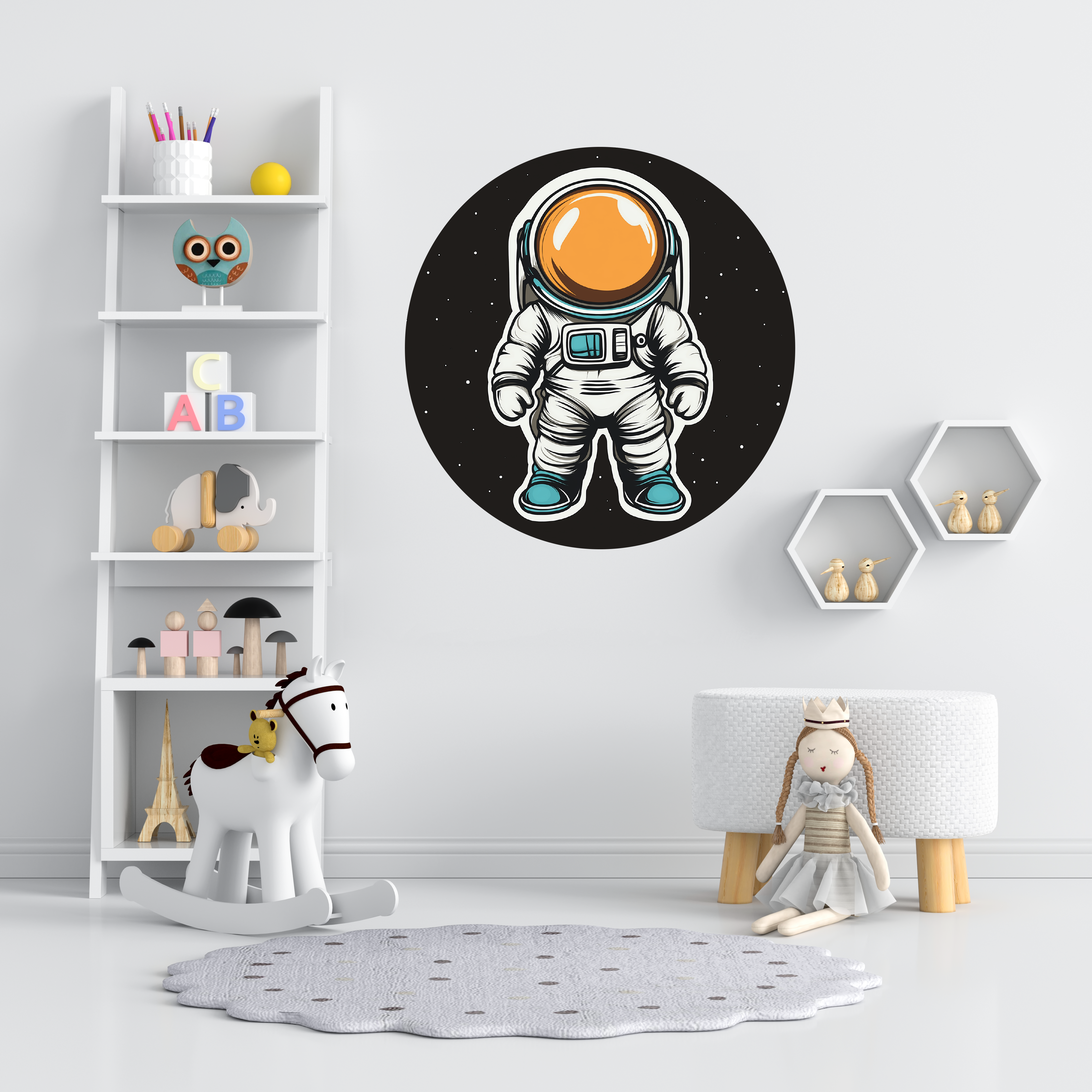 Astronot ve Yıldızlar Yuvarlak Sticker, Yuvarlak Şekilli Sticker, Çocuk Odası Duvar Dekoru