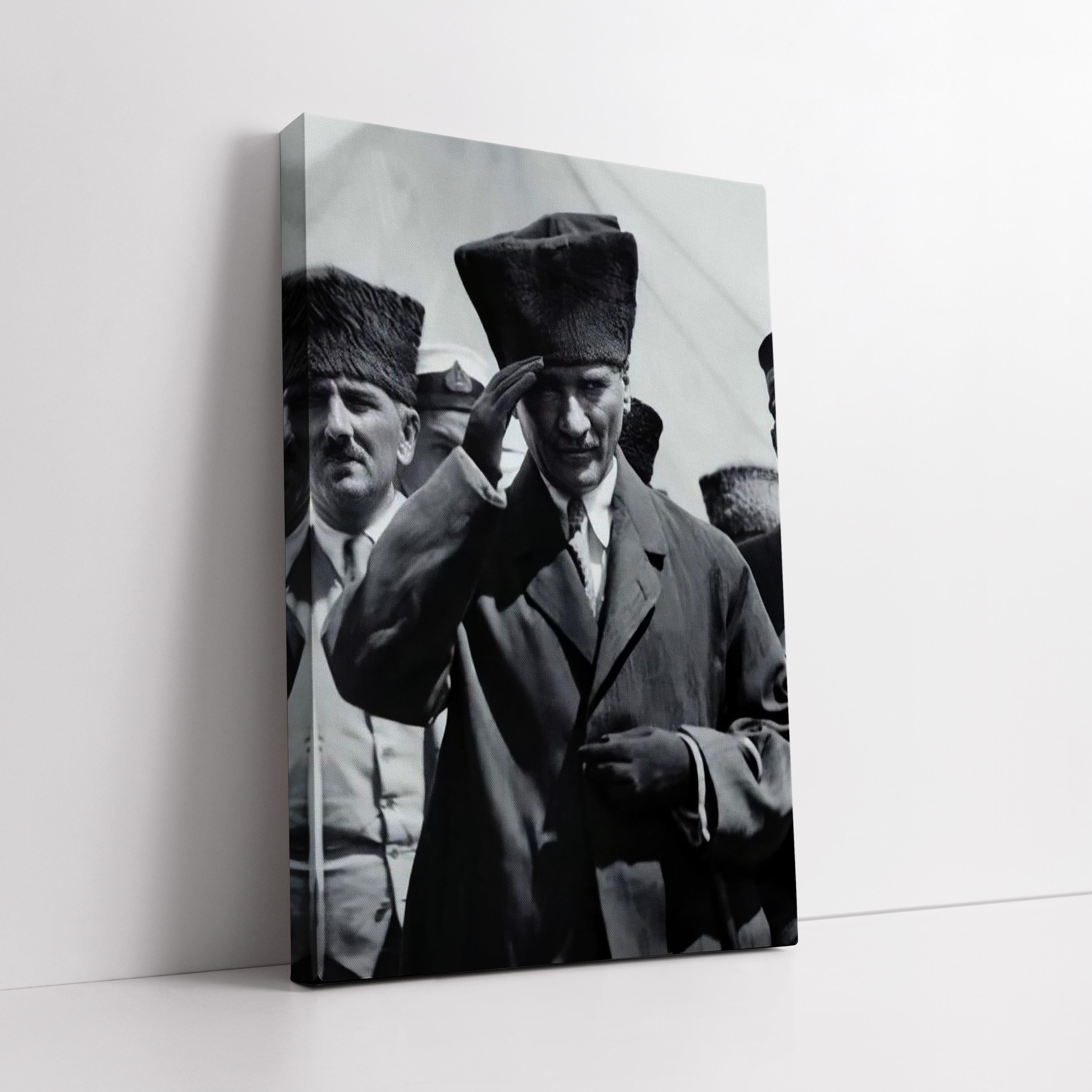 Atatürk Selamı Siyah Beyaz Kanvas Tablo (KSS-D-184)