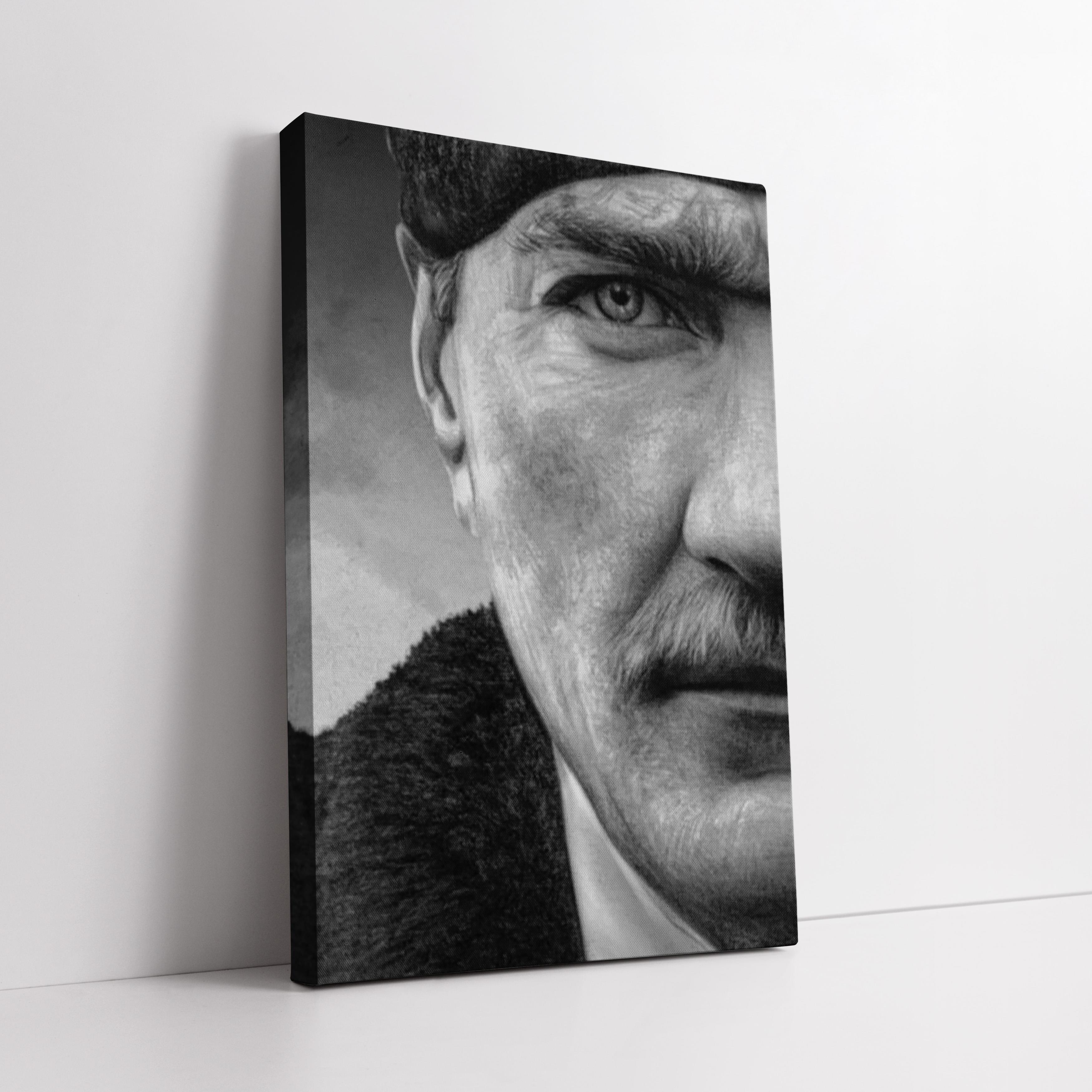 Atatürk Yarım Silüet Siyah Beyaz Kanvas Tablo (KSS-D-183)