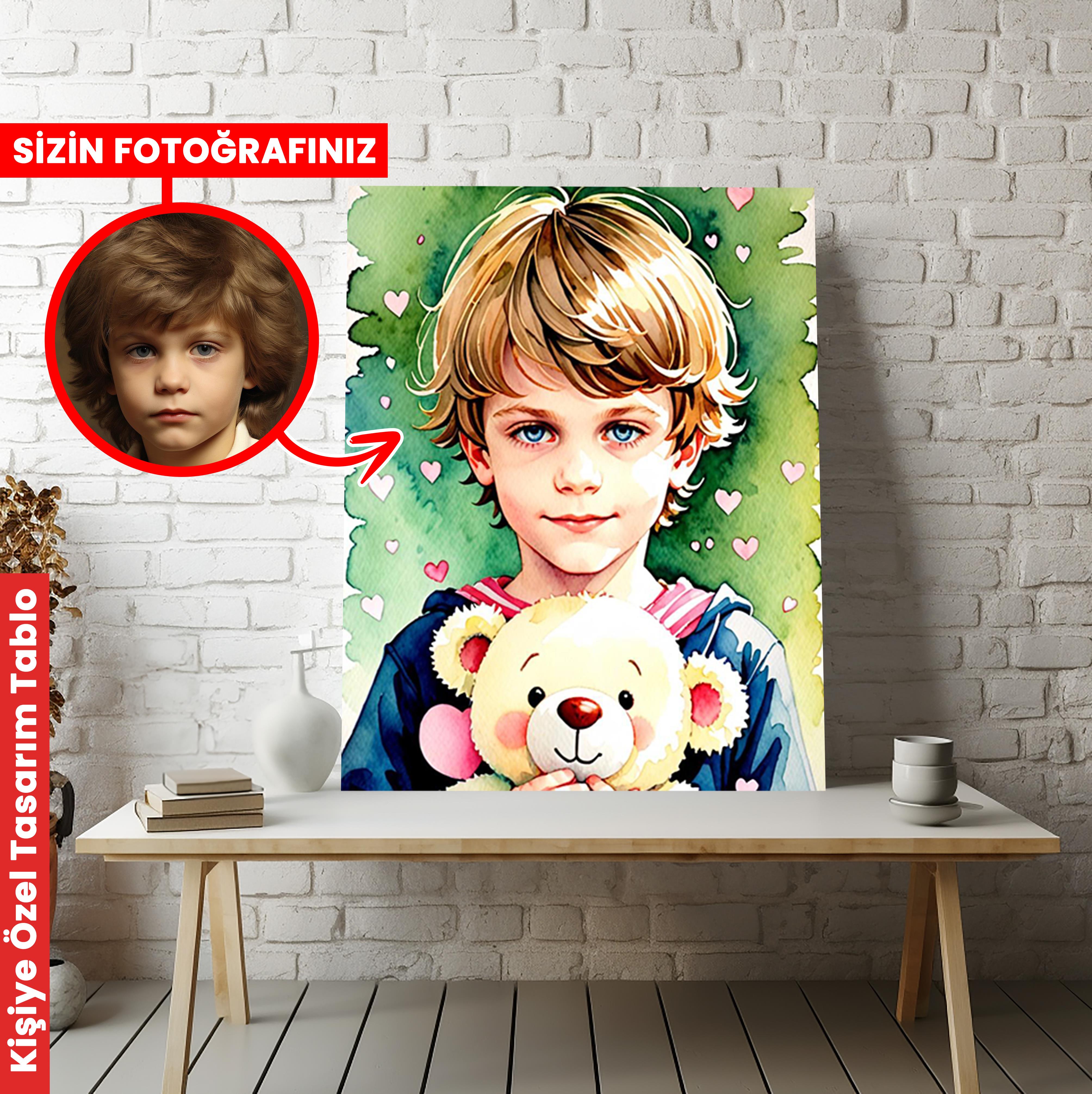 Ayı Teddy Aşk Erkek Çocuk Kişiye Özel Kanvas Tablo (KOSS-SD-78)