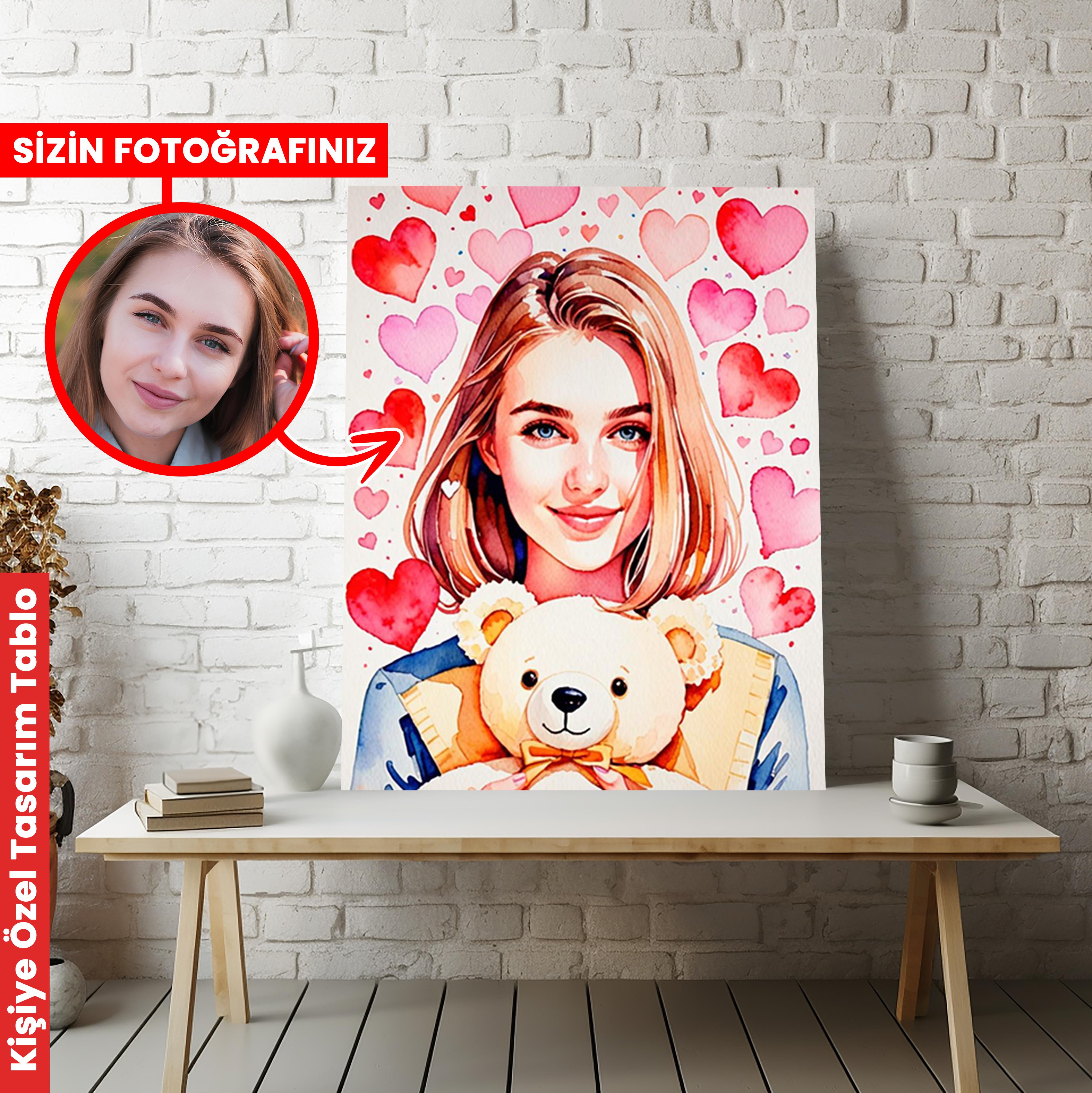 Ayı Teddy Aşk Kişiye Özel Kanvas Tablo (KOSS-SD-138)
