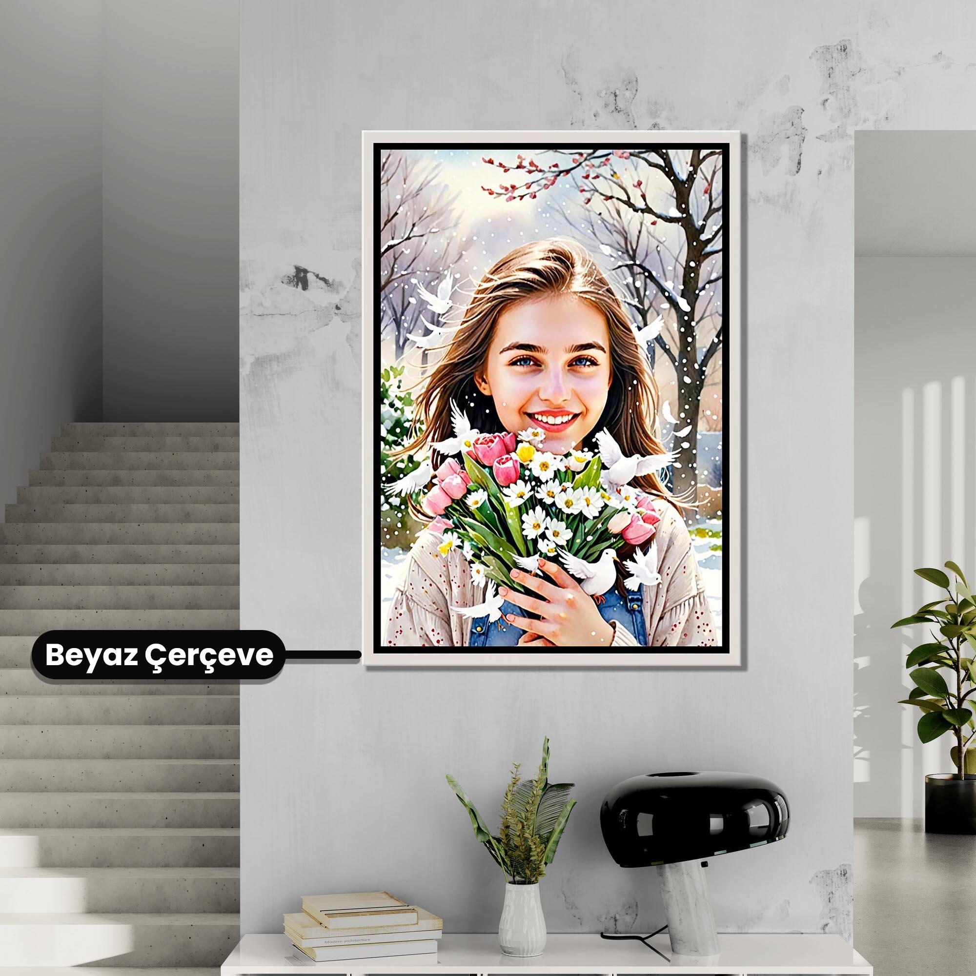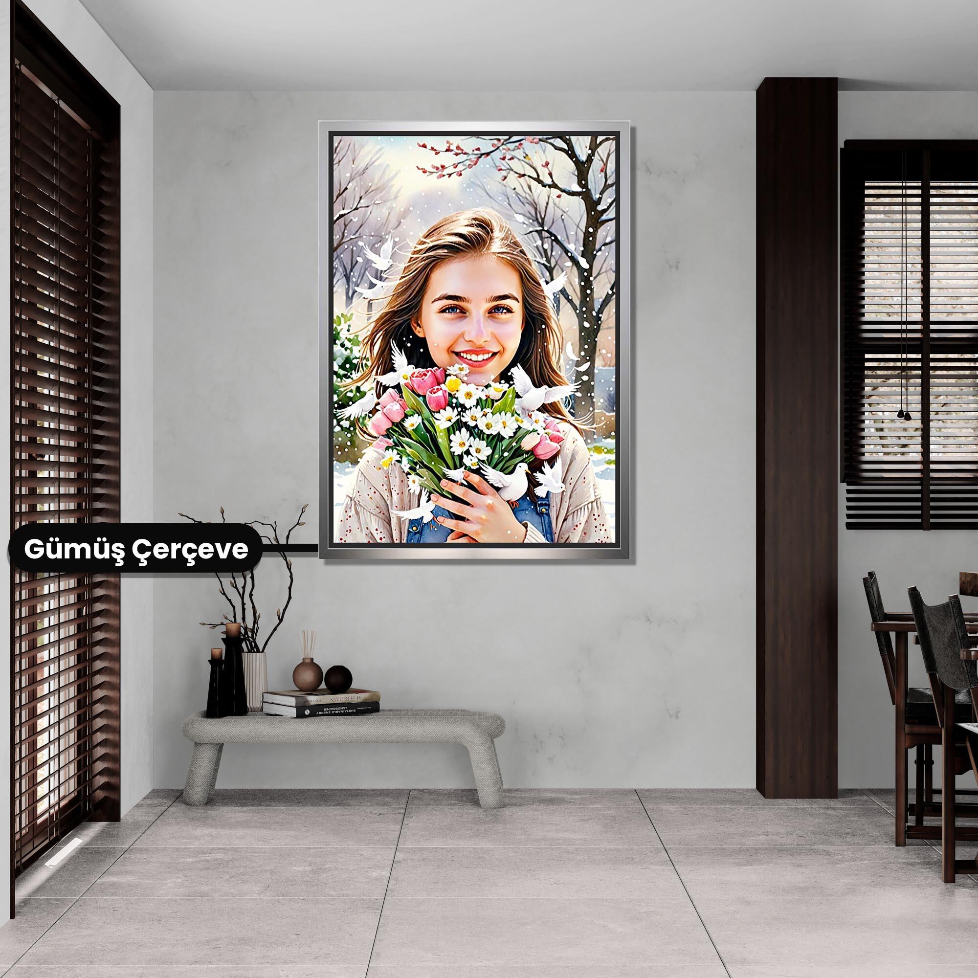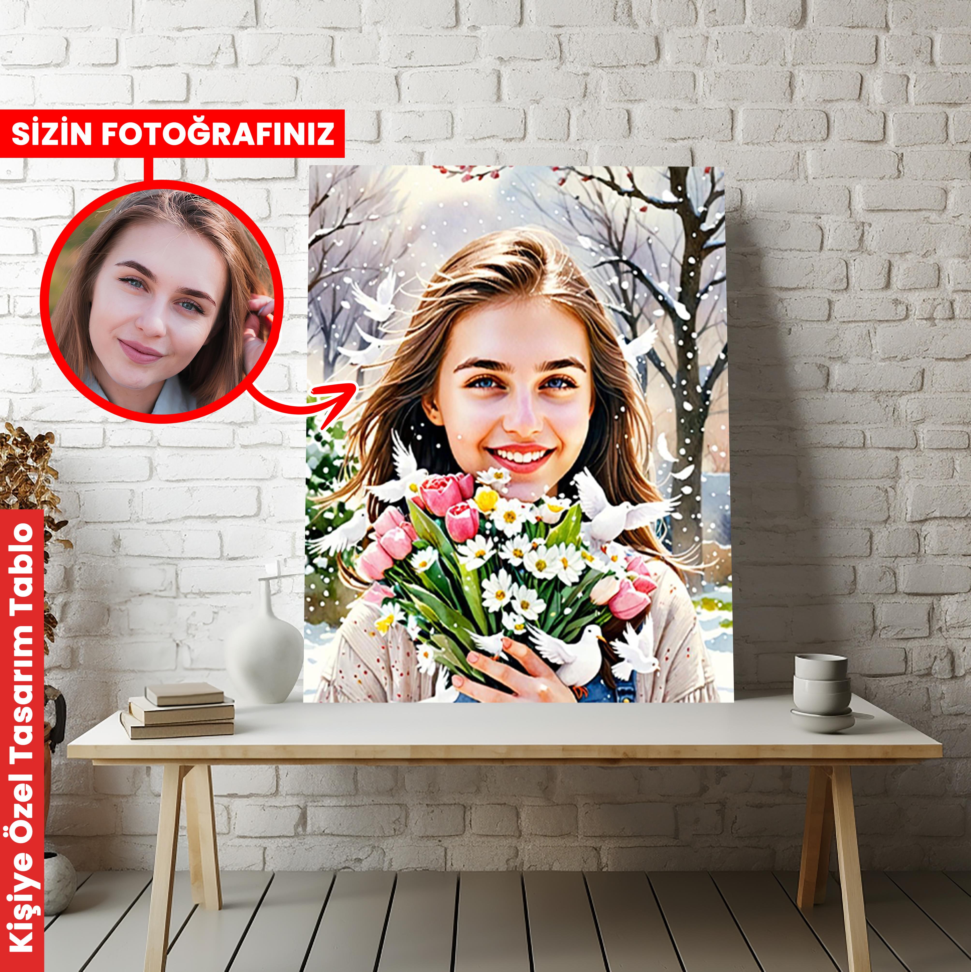 Bahar Geldi Kadın Kişiye Özel Kanvas Tablo (KOSS-SD-134)