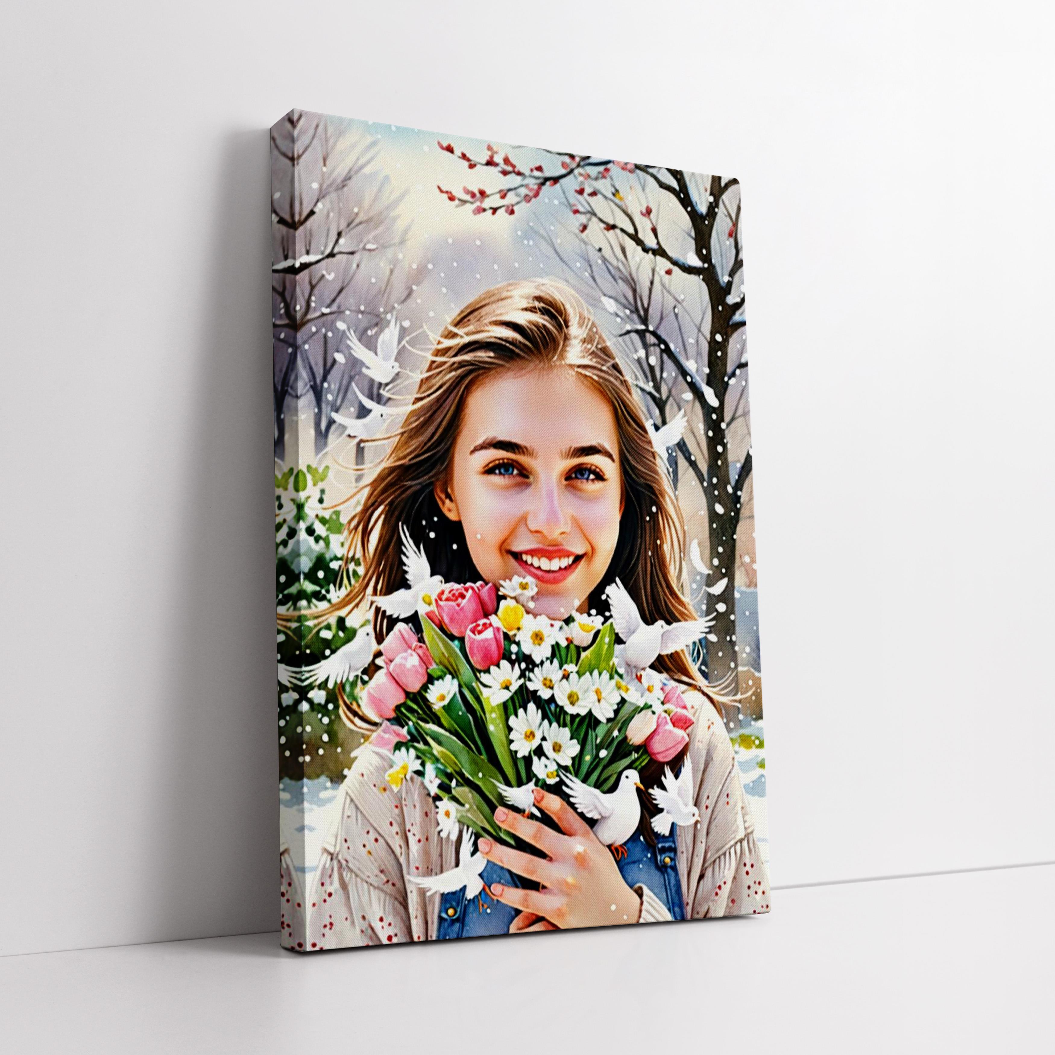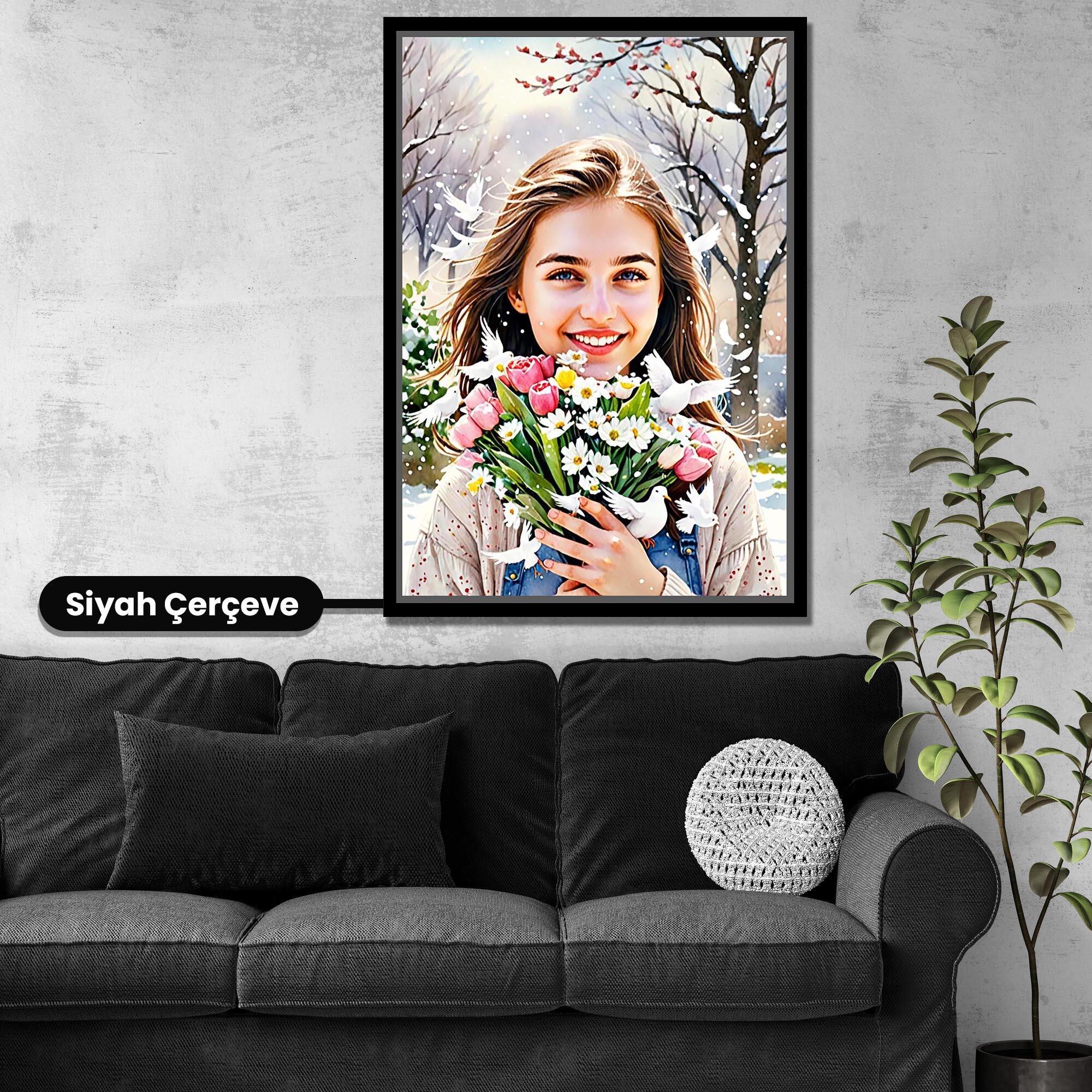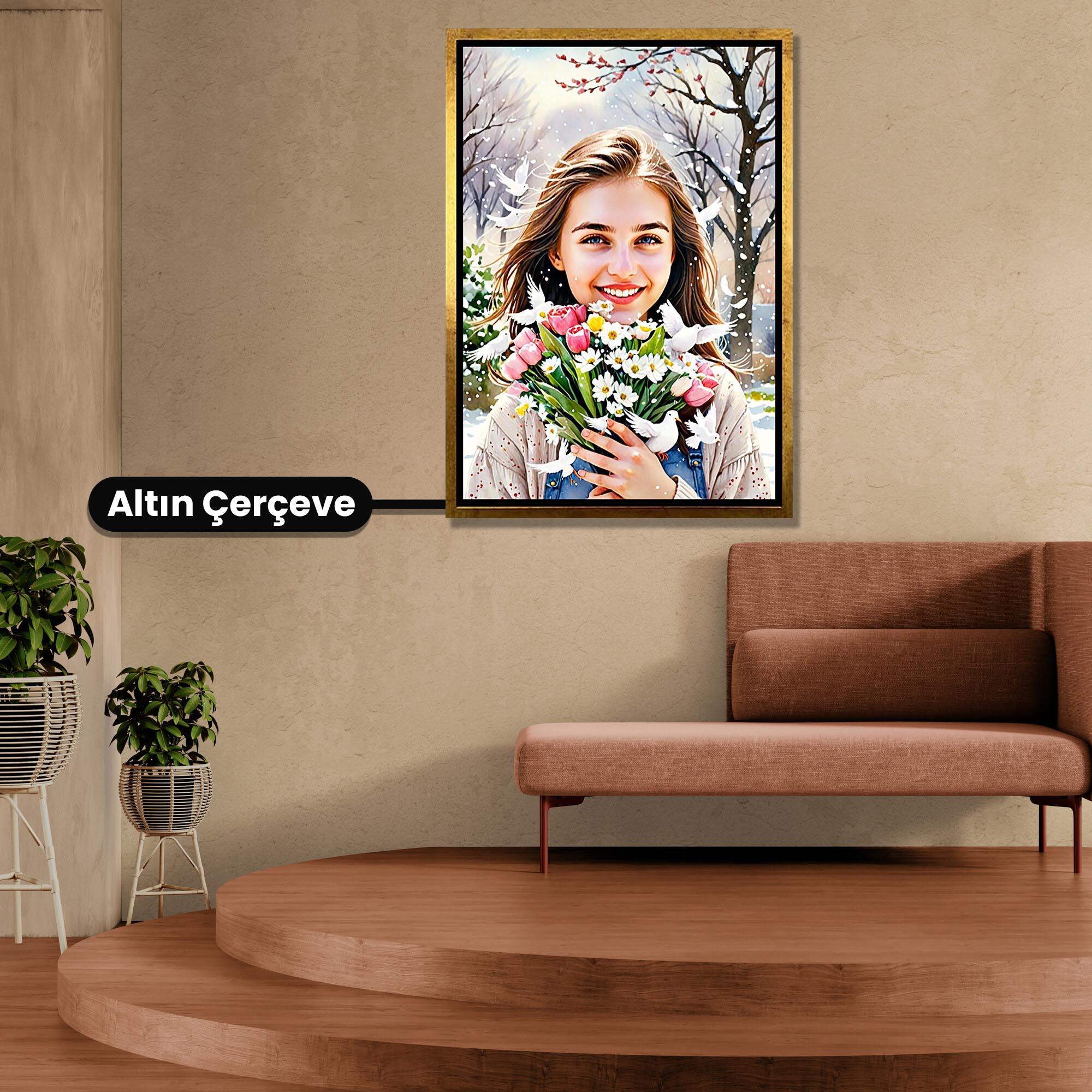 Bahar Geldi Kadın Kişiye Özel Kanvas Tablo (KOSS-SD-134)