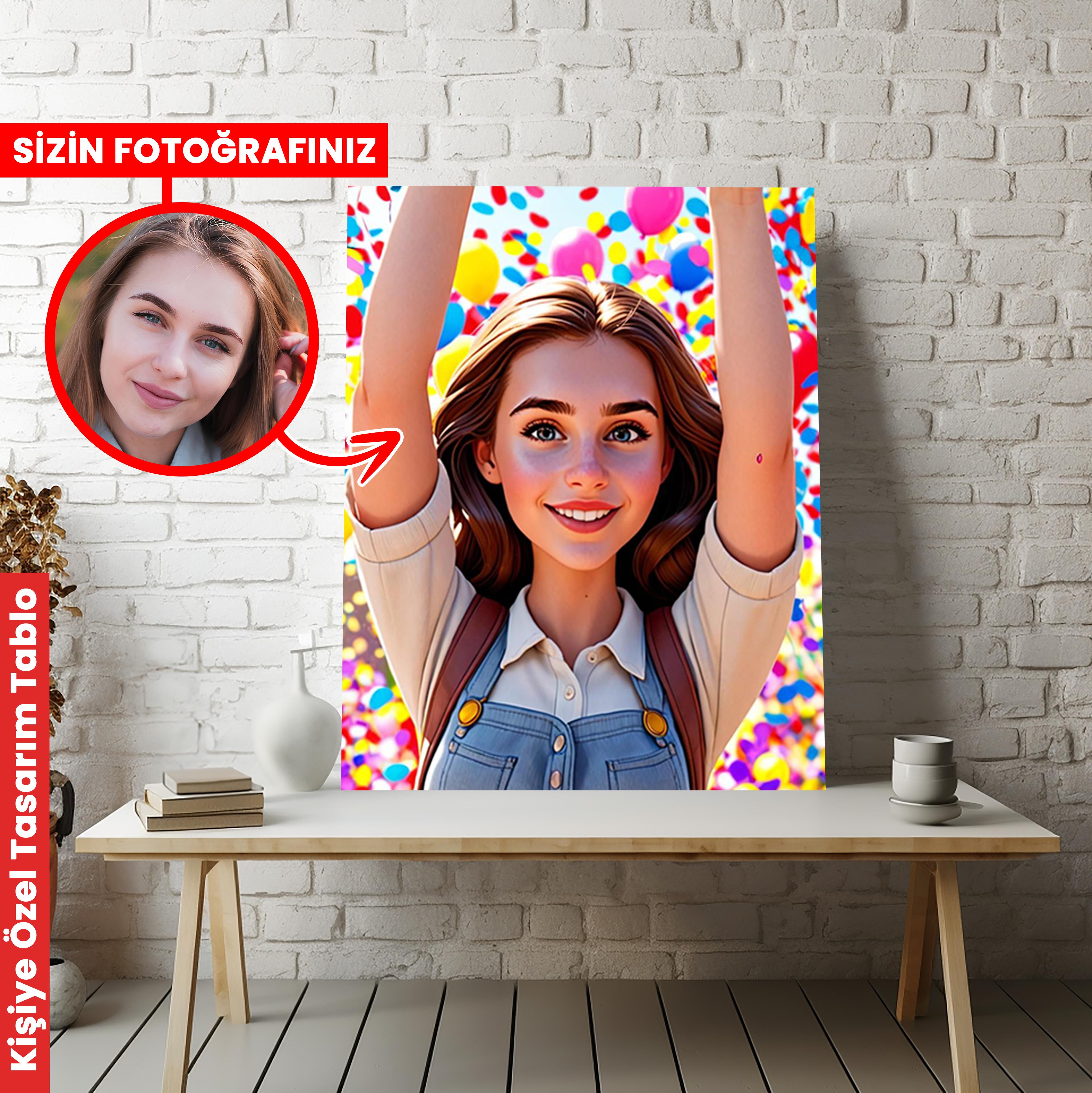 Balonların İçinde Kadın Kişiye Özel Kanvas Tablo (KOSS-SD-137)