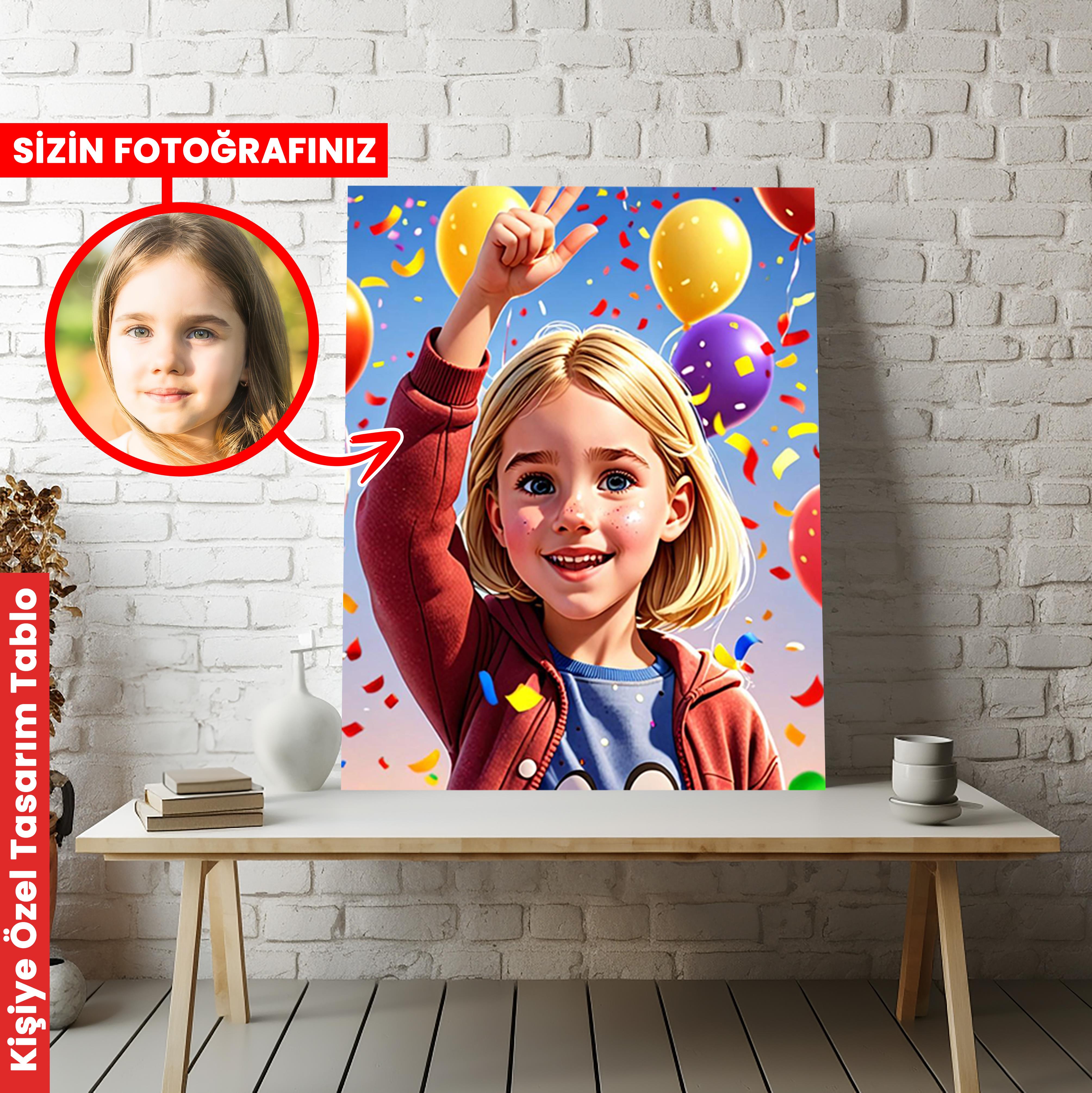 Balonların İçinde Kız Çocuk Kişiye Özel Kanvas Tablo (KOSS-SD-172)