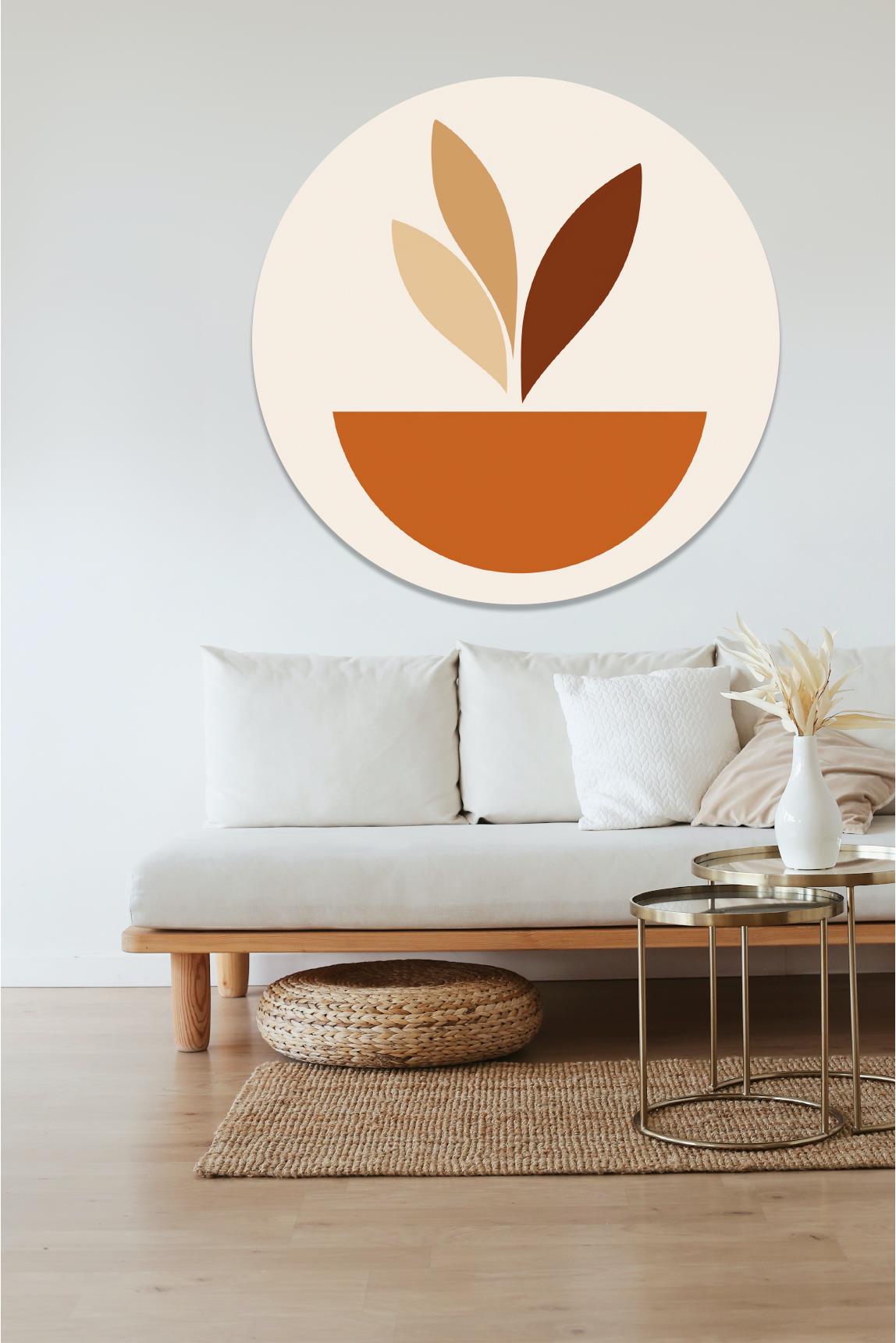 Bohem Tarzı Çiçek Yuvarlak Sticker, Yuvarlak Şekilli Sticker, Minimal Şekiller Duvar Dekoru