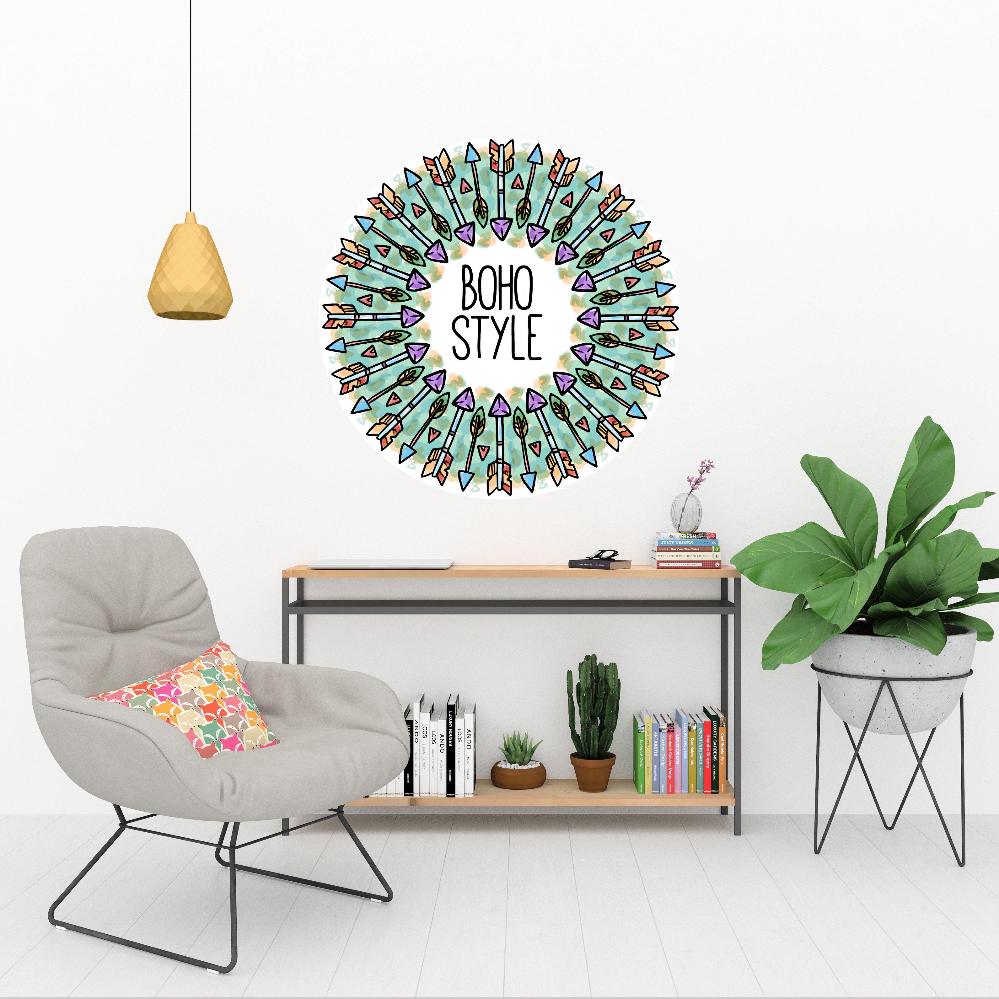 Bohem Tarzı Etnik Yuvarlak Sticker, Yuvarlak Şekilli Duvar Stickerı, Ok Simgeli Duvar Dekoru (KSS-STCK-Y-16)
