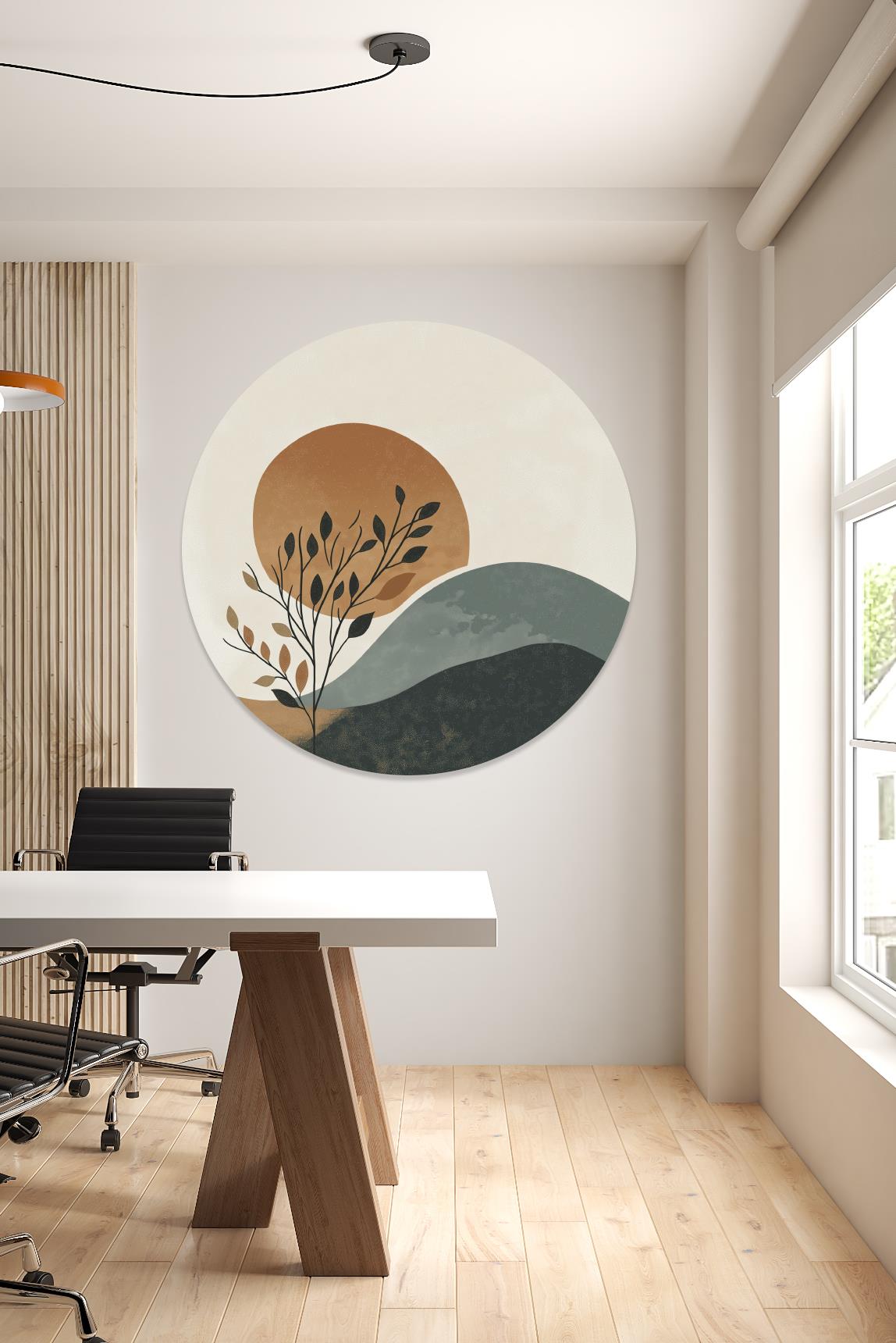 Bohem Tarzı Manzara Yuvarlak Sticker, Yuvarlak Şekilli Sticker, Soyut Minimal Duvar Dekoru