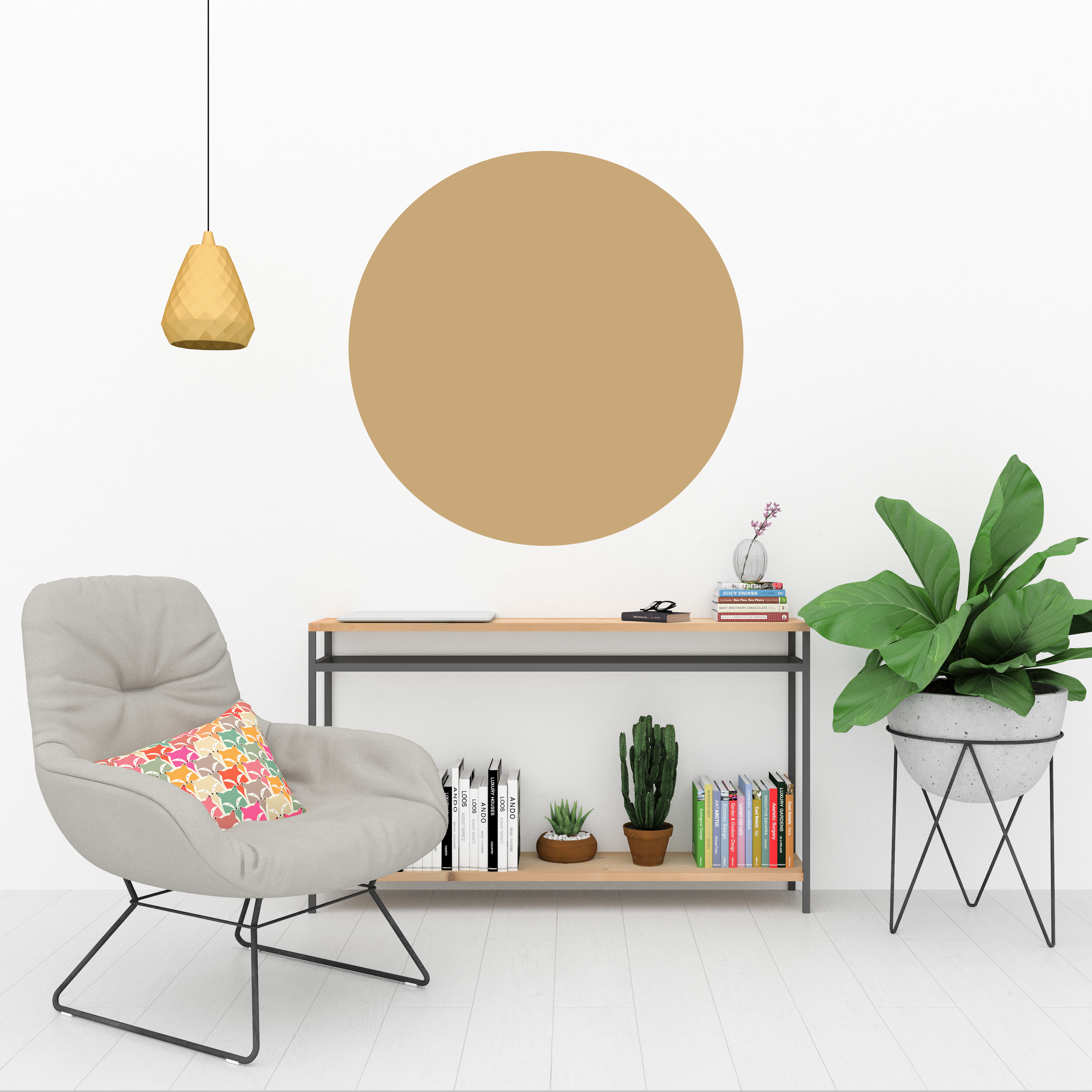 Bohem Tarzı Modern Kahverengi Yuvarlak Sticker, Yuvarlak Şekilli Duvar Stickerı, Boho Tarzı Minimal Duvar Dekoru (KSS-STCK-Y-39)