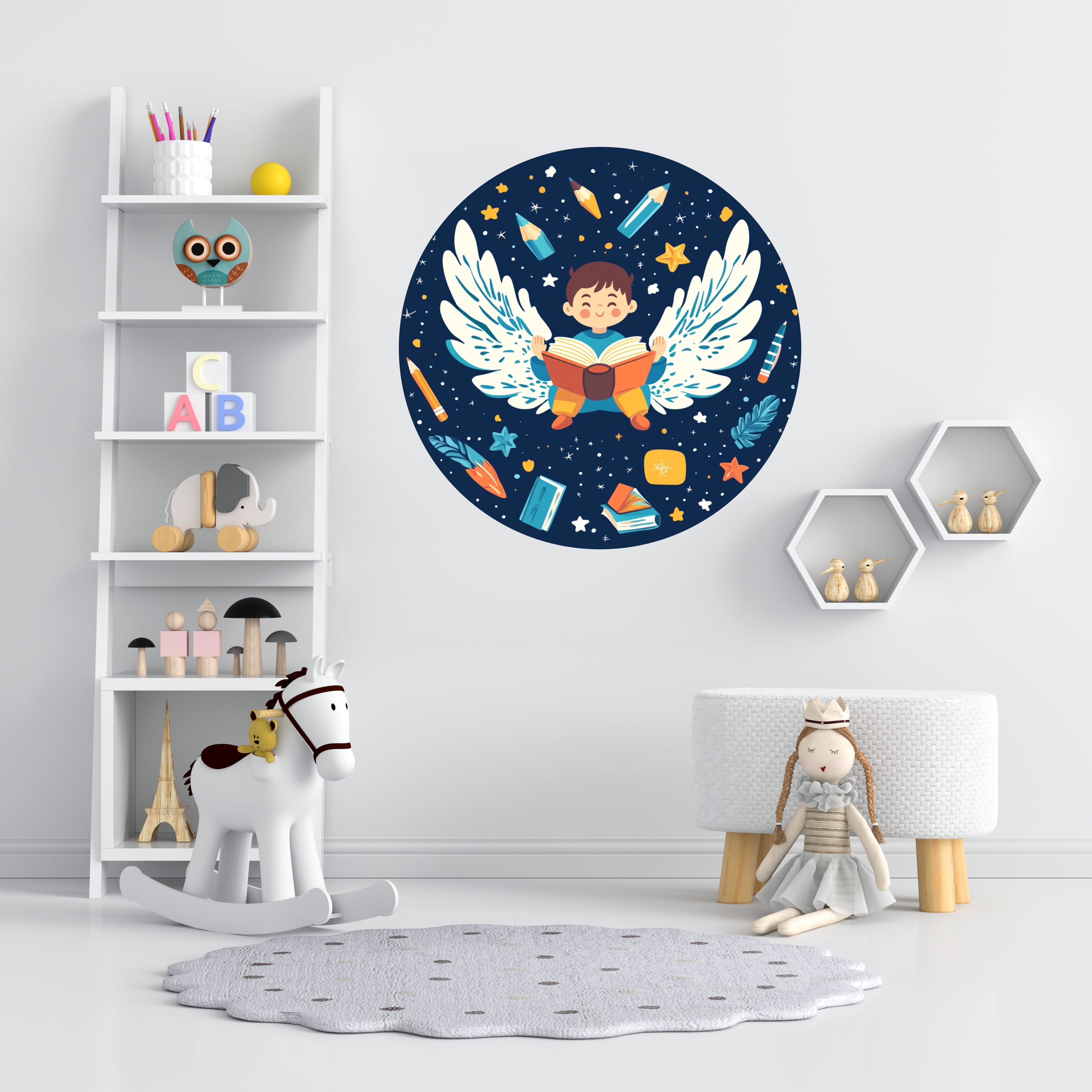 Eğitici ve Öğretici Kreş Yuvarlak Sticker, Yuvarlak Şekilli Sticker, Çocuk Odası Duvar Dekoru