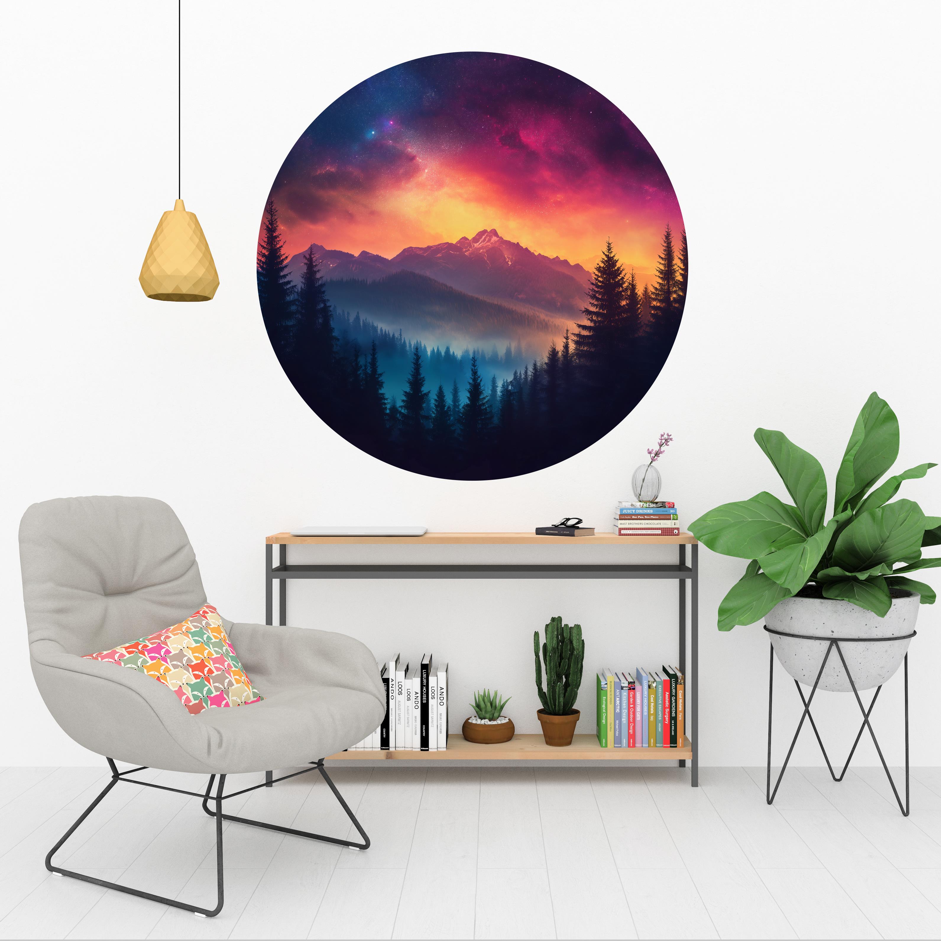 Eşsiz Doğa Manzarası Yuvarlak Sticker, Yuvarlak Şekilli Sticker, Renkli Gökyüzü Duvar Dekoru