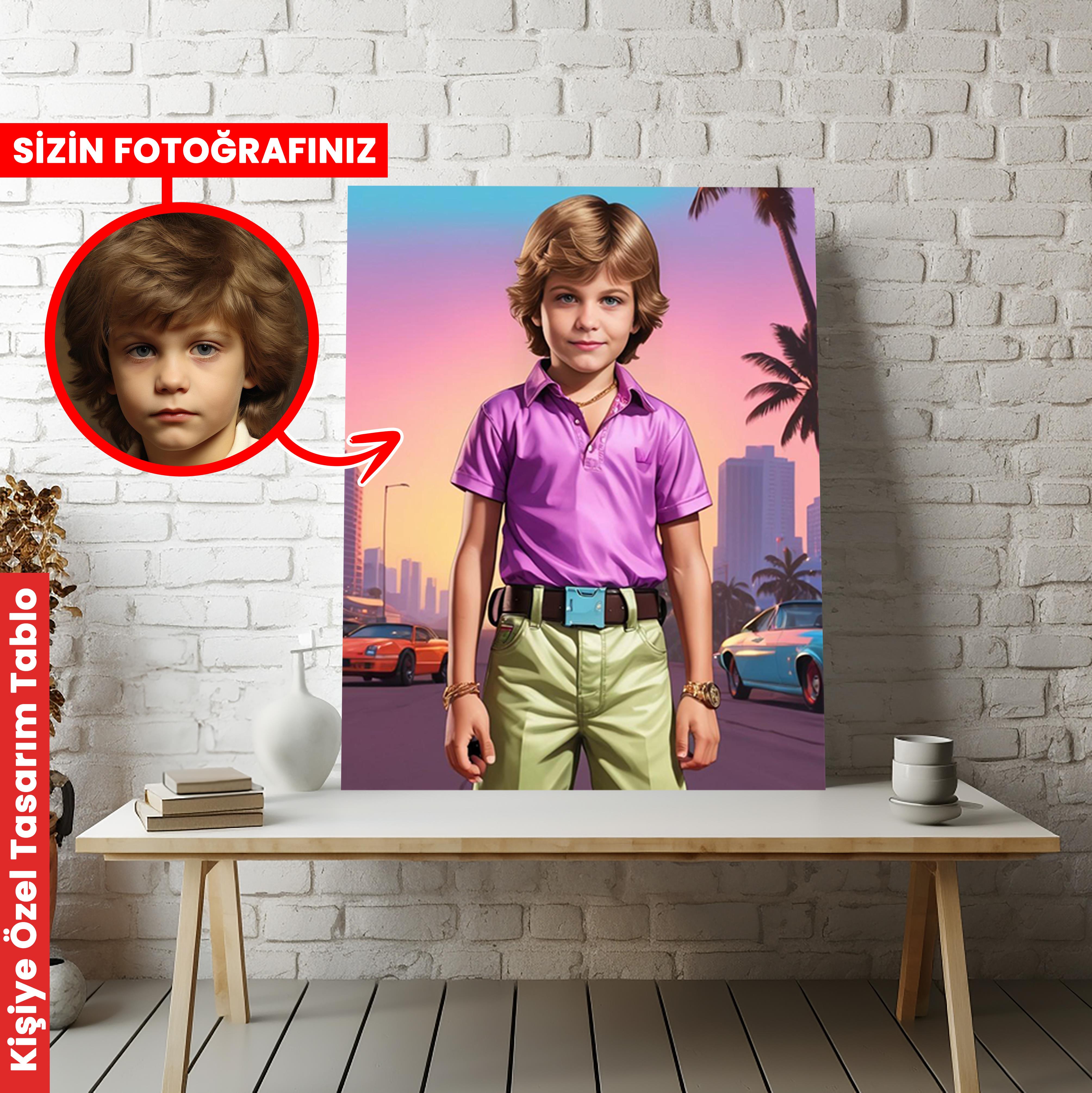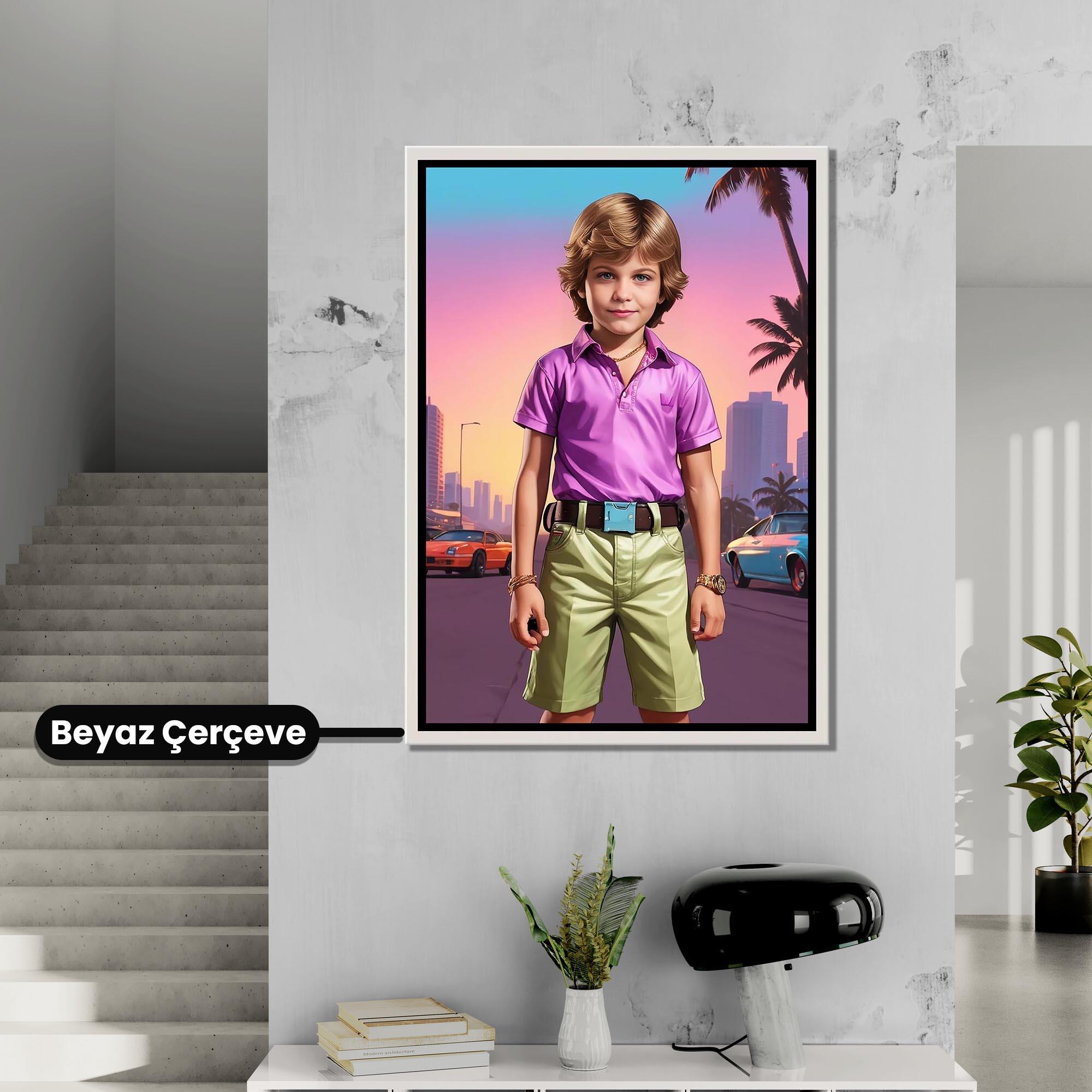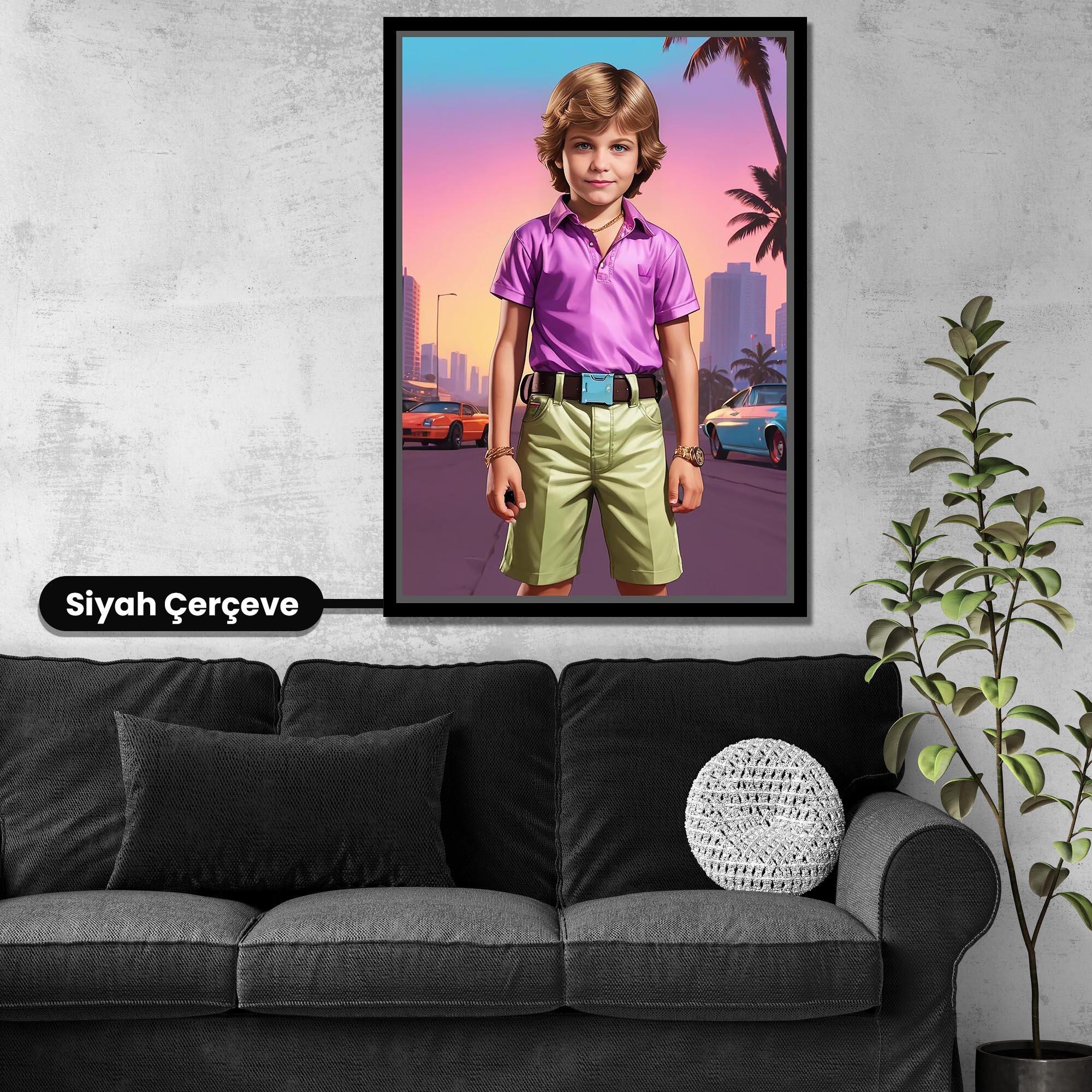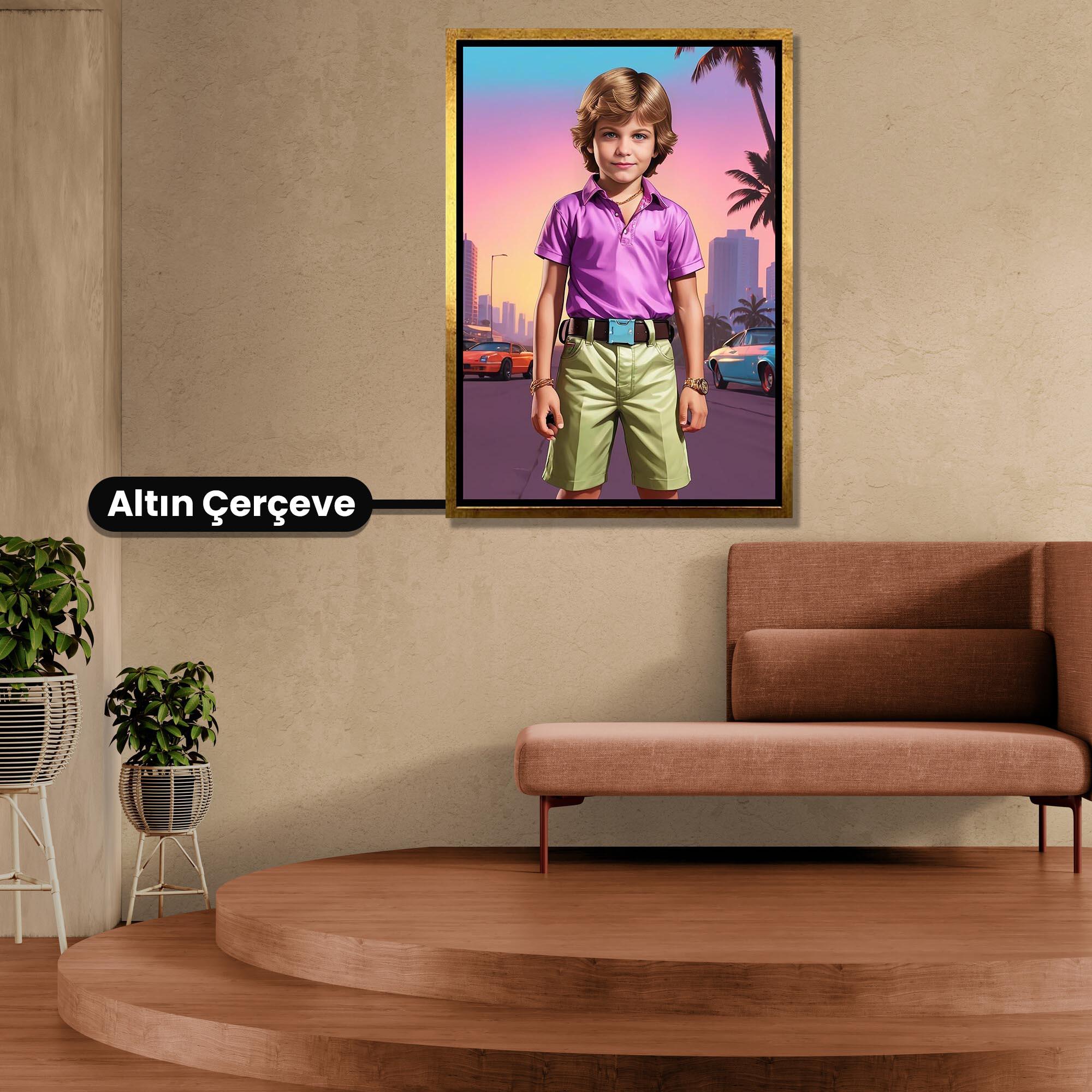 Gta Vice City Temalı Erkek Çocuk Kişiye Özel Kanvas Tablo (KOSS-SD-62)