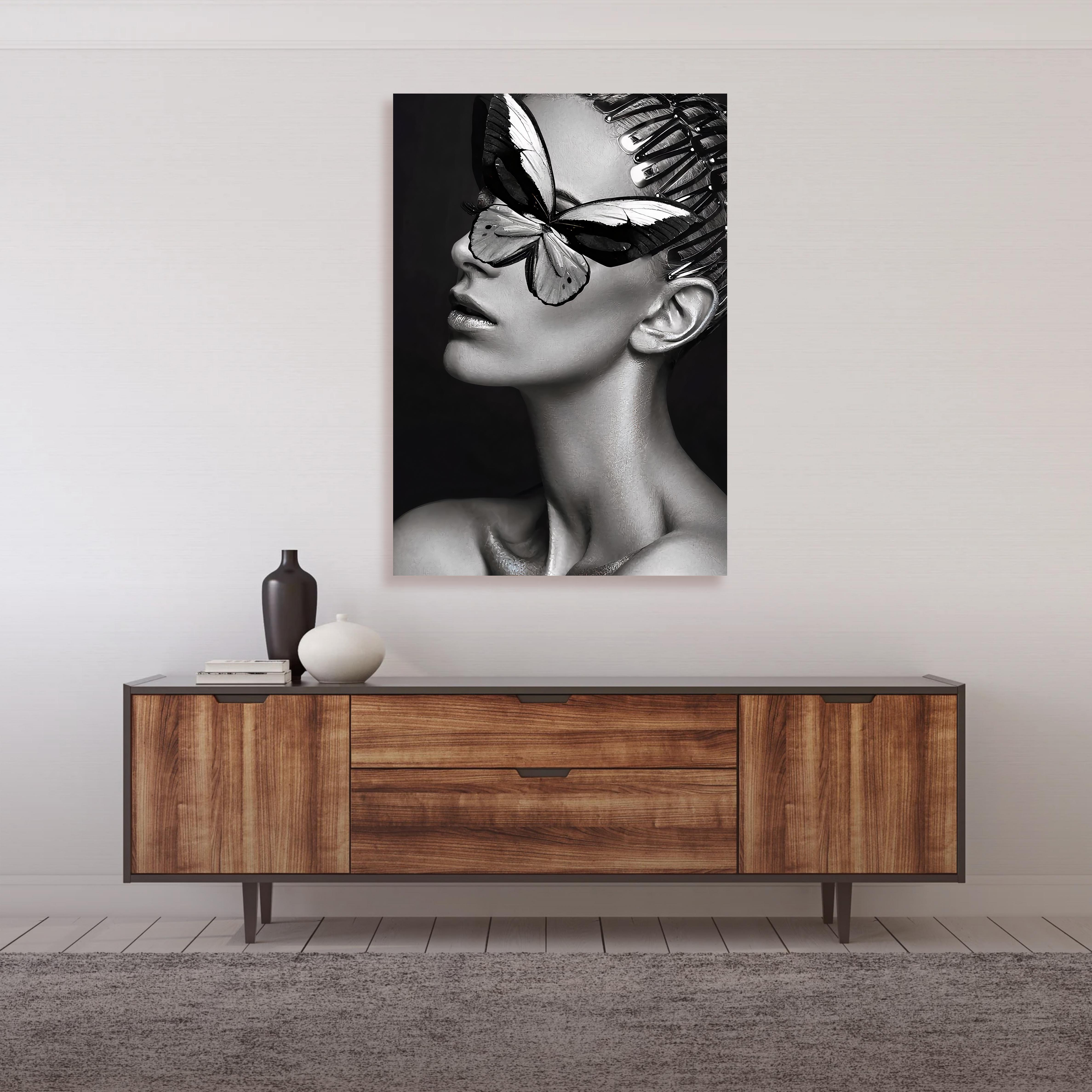 Gümüş Kelebekli Büyüleyici Kadın Kanvas Tablo (KSS-D-91)