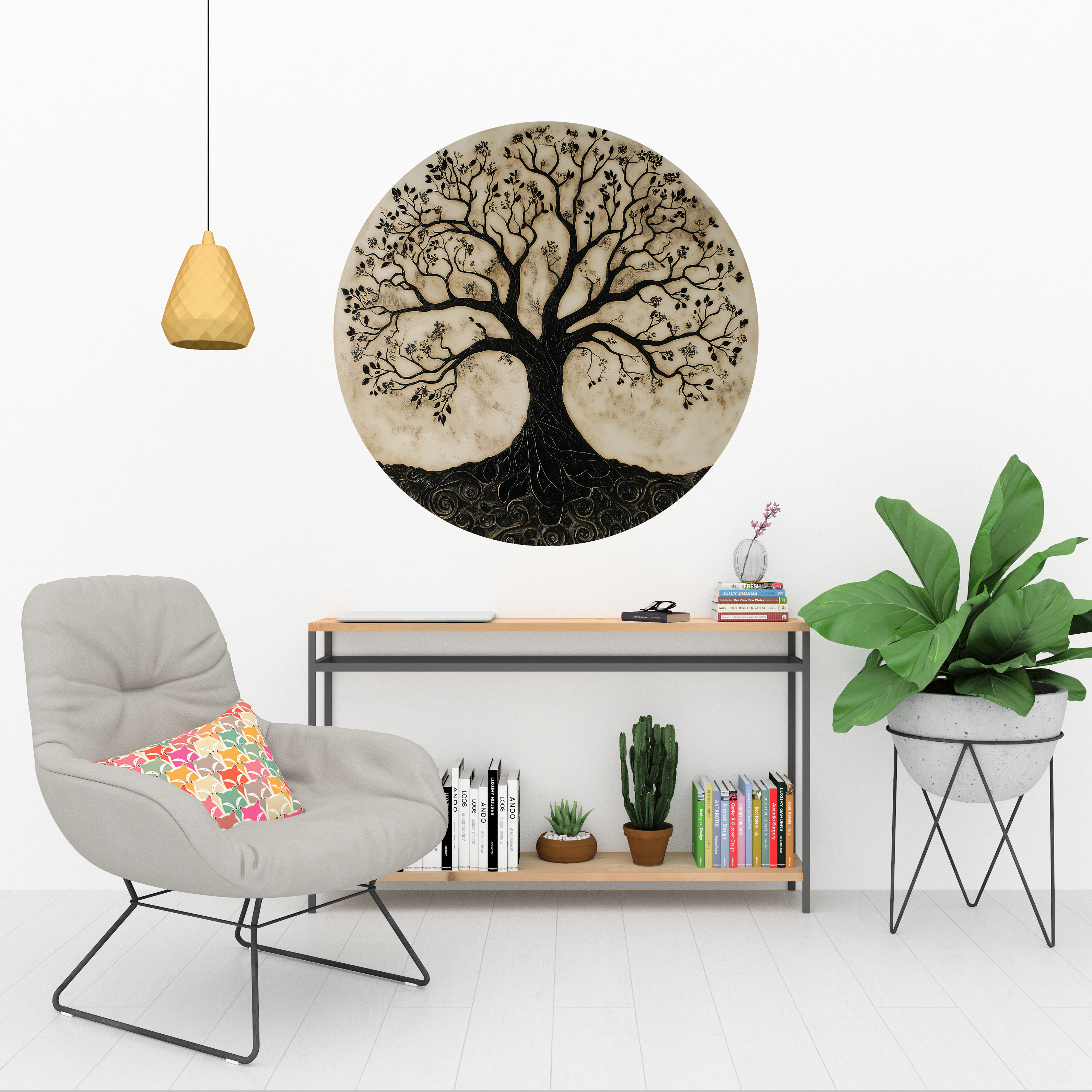 Hayat Ağacı Renkli Yuvarlak Sticker, Yuvarlak Şekilli Sticker, Doğa Yapraklar ve Çiçekler Duvar Dekoru