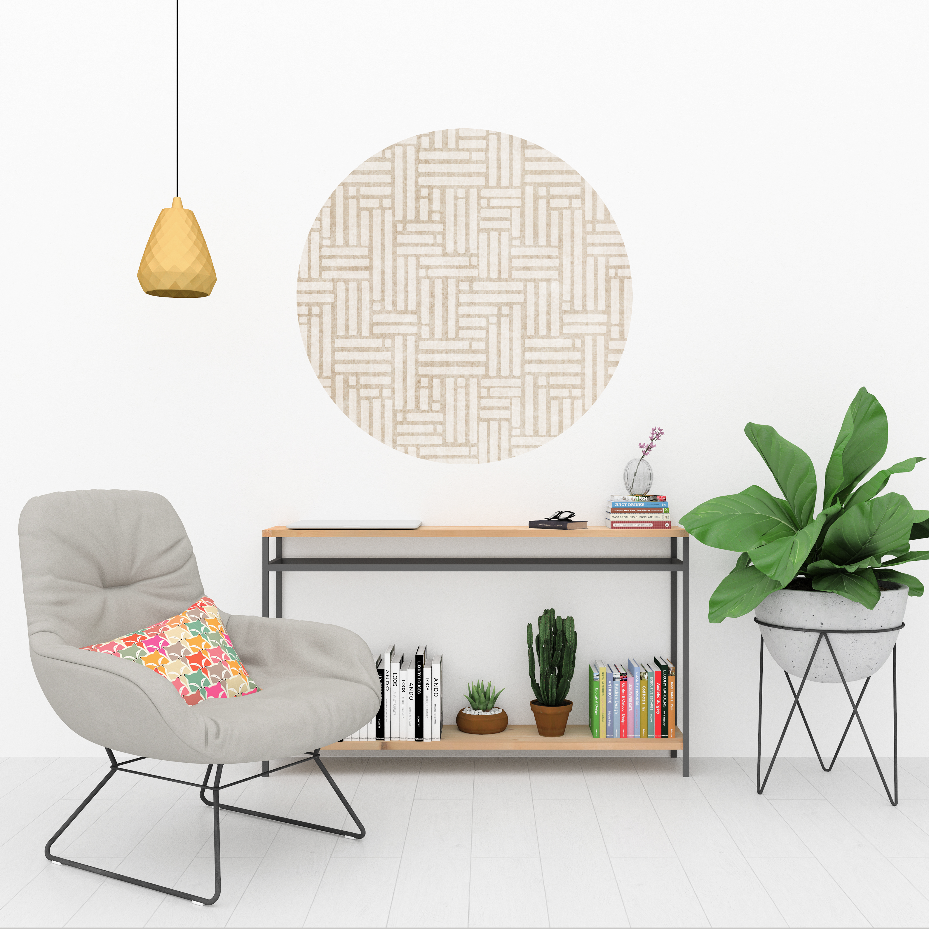 İskandinav Tarzı Soyut Yuvarlak Sticker, Yuvarlak Şekilli Duvar Stickerı, Minimal Çizgiler Duvar Dekoru (KSS-STCK-Y-22)