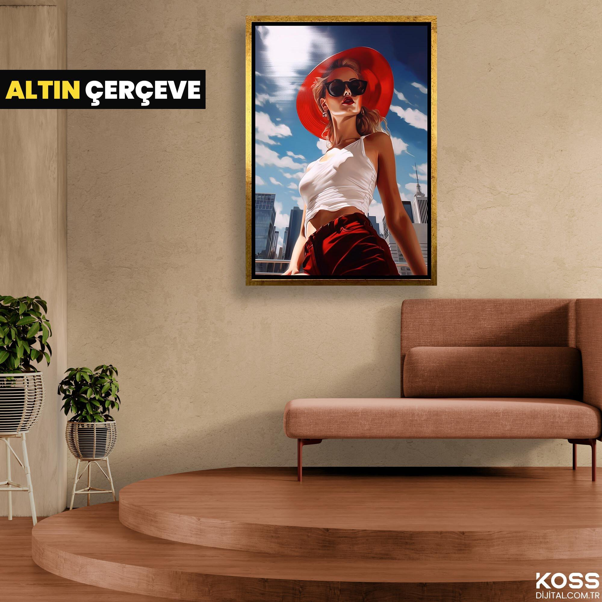 Kırmızı Beyaz Kadın Kanvas Tablo (KSS-D-893)