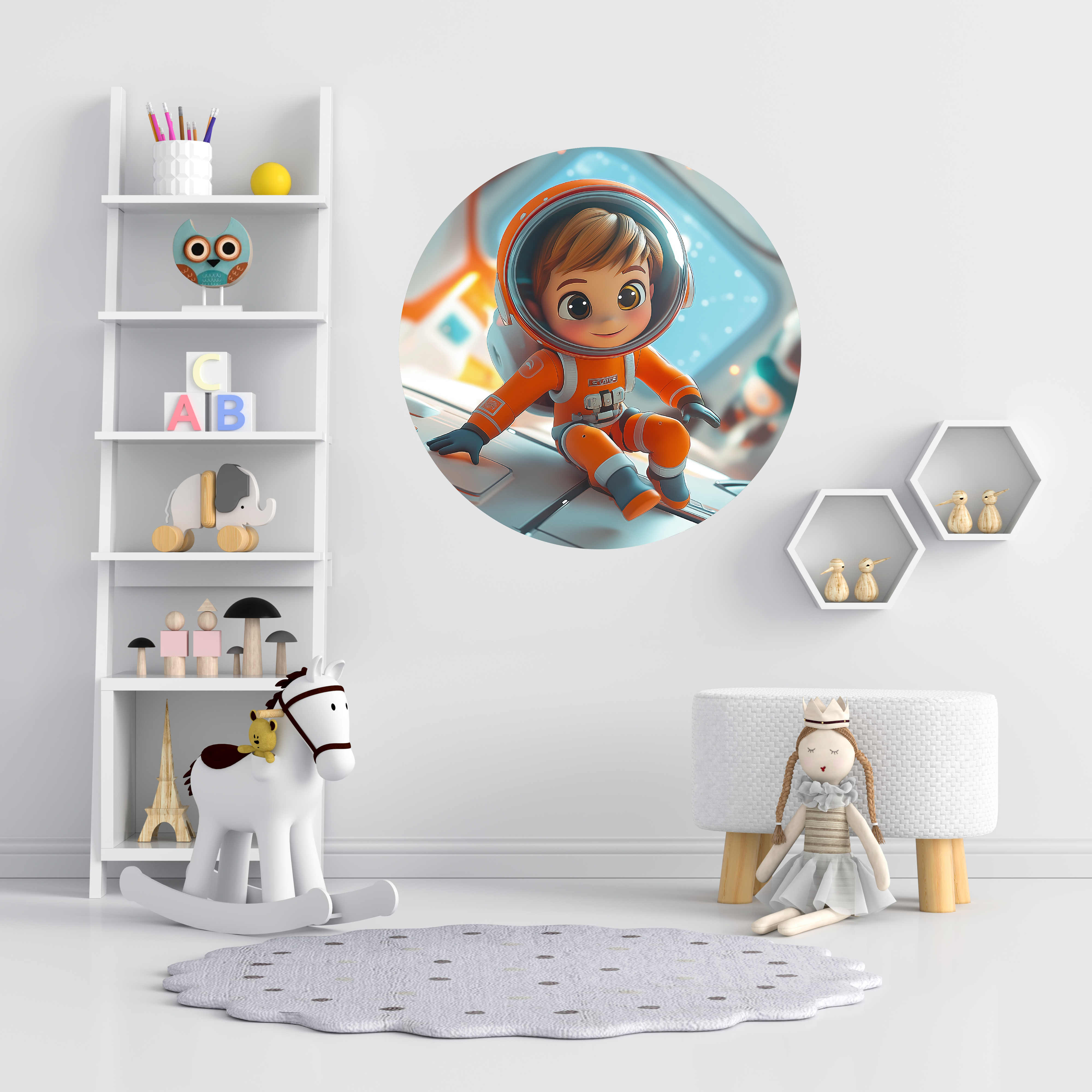 Küçük Astronot Renkli Yuvarlak Sticker, Yuvarlak Şekilli Sticker, Çocuk Odası Duvar Dekoru