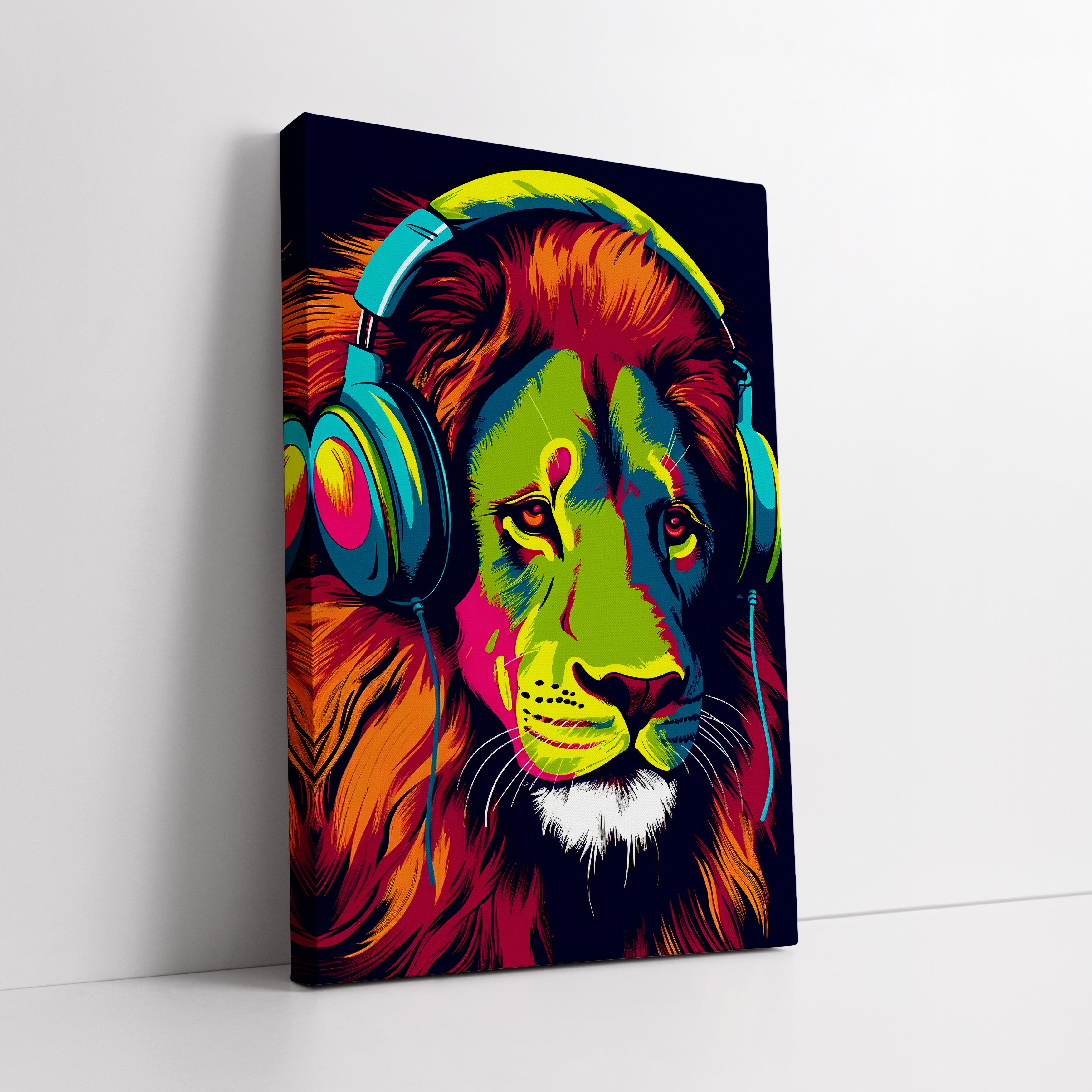 Kulaklıklı Renkli Aslan Kanvas Tablo (KSS-D-187)