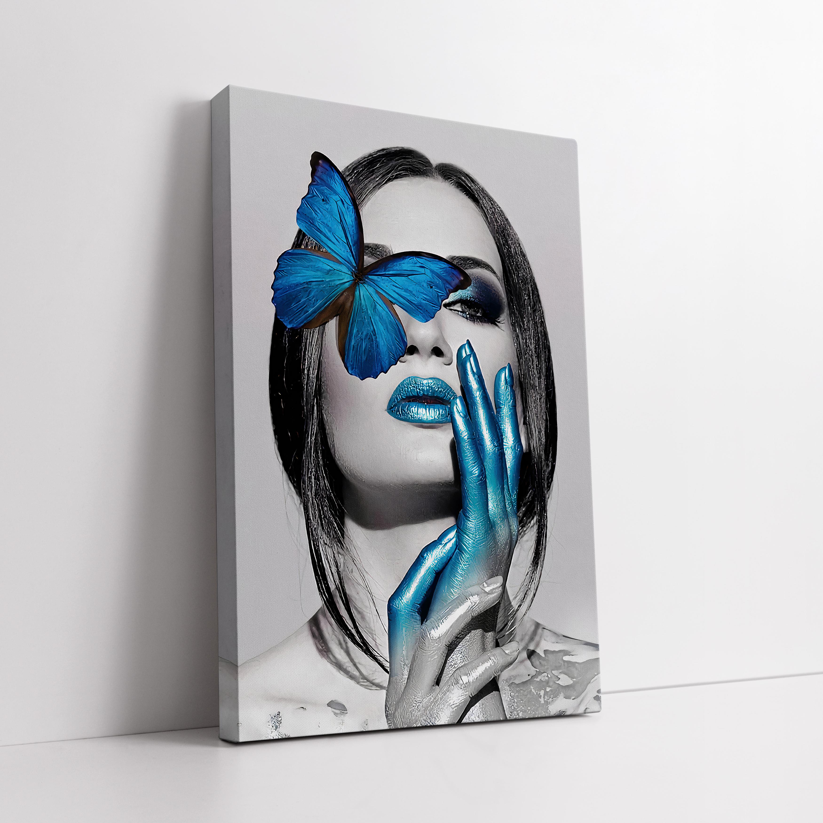 Mavi Kelebekli Kadın Kanvas Tablo (KSS-D-89)
