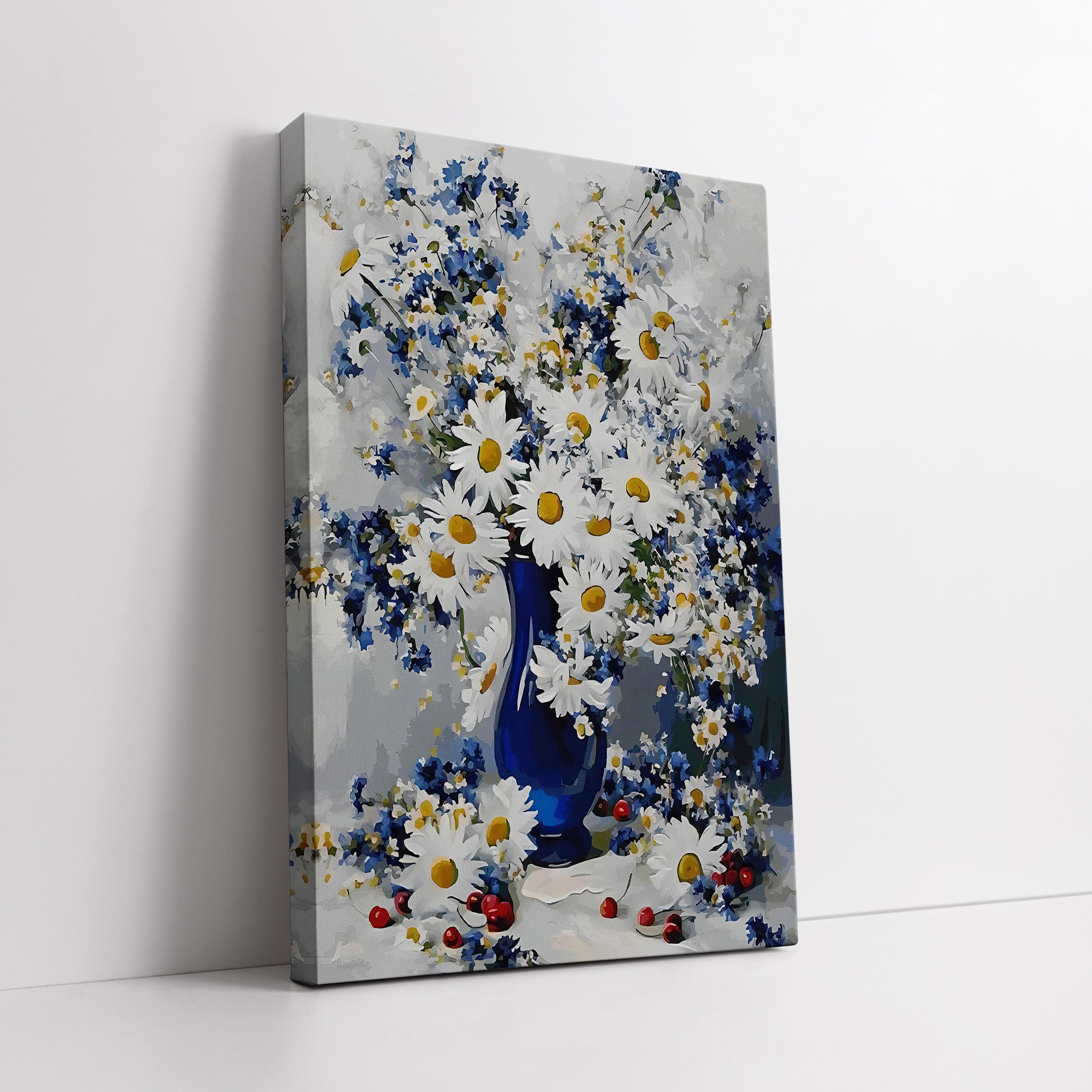 Mavi Vazoda Papatyalar Kanvas Tablo (KSS-D-10)