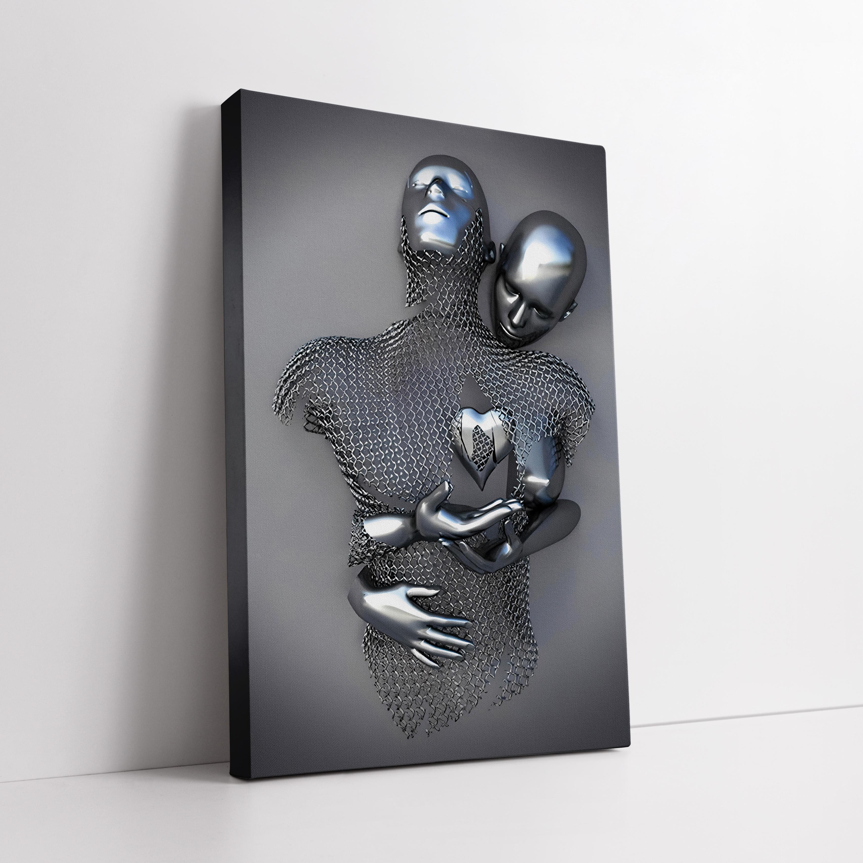 Metalik Efektli Kalp ve Sarılma Kanvas Tablo (KSS-D-97)