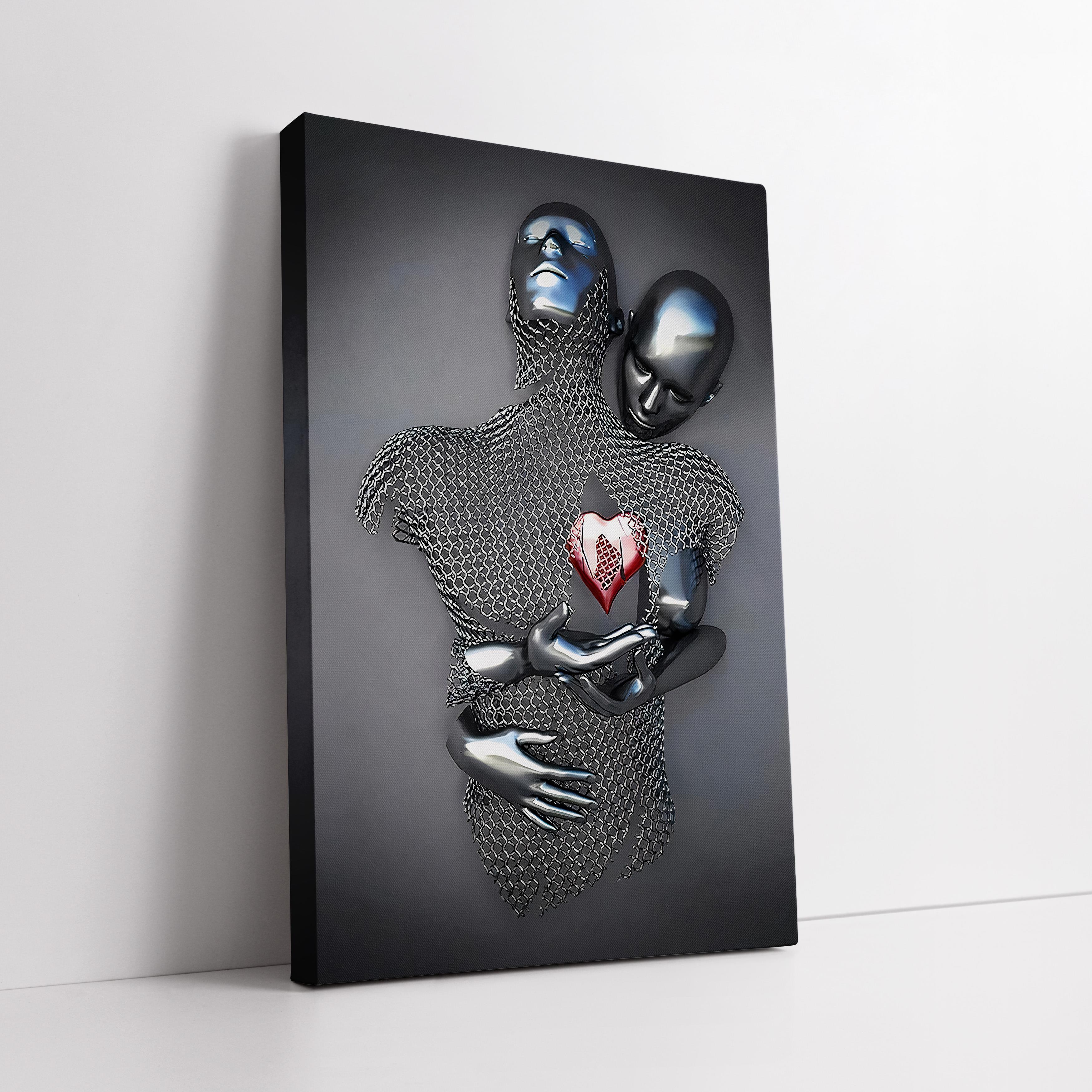 Metalik Sarılma ve Kırmızı Kalp Kanvas Tablo (KSS-D-113)