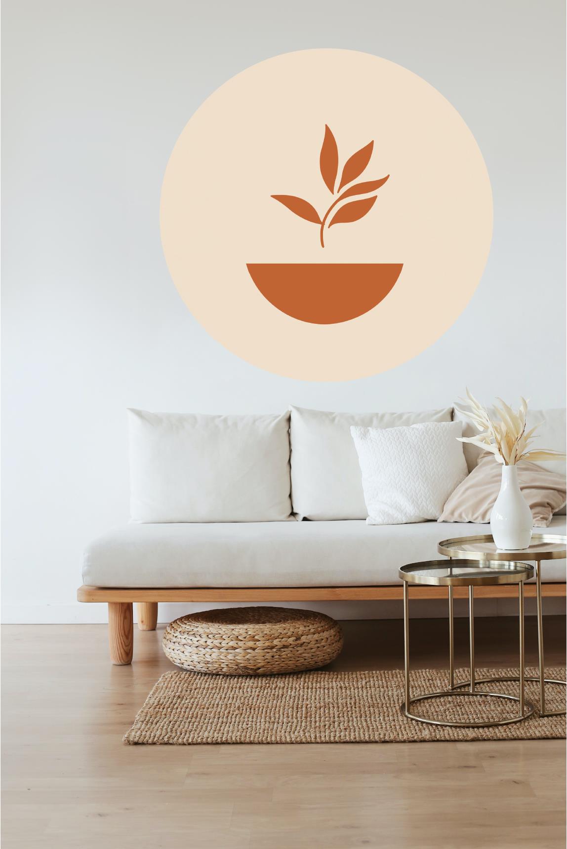 Modern Bohem Çiçek Yuvarlak Sticker, Yuvarlak Şekilli Sticker, Minimal Desen Duvar Dekoru