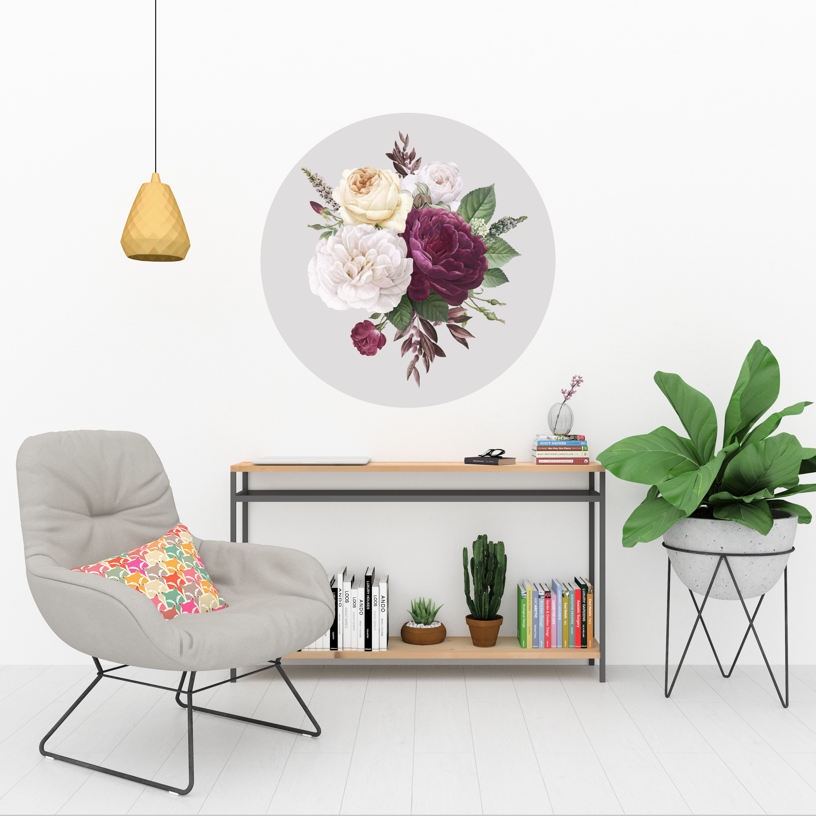 Modern Renkli Güller Yuvarlak Sticker, Yuvarlak Şekilli Duvar Stickerı, Çiçek Buketi Desenli Duvar Dekoru (KSS-STCK-Y-38)