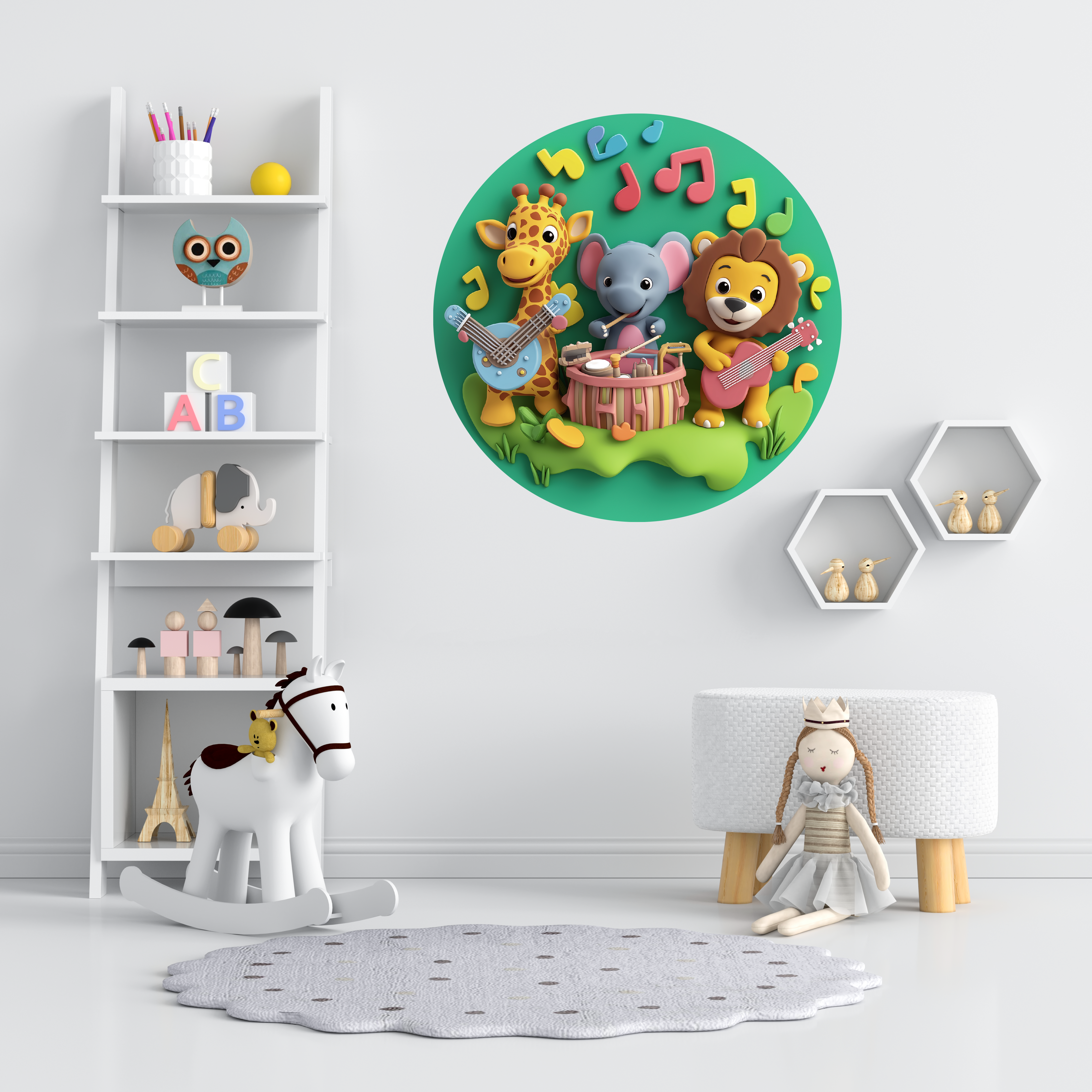 Müzisyen Sevimli Hayvanlar Yuvarlak Sticker, Yuvarlak Şekilli Sticker, Çocuk Odası Duvar Dekoru