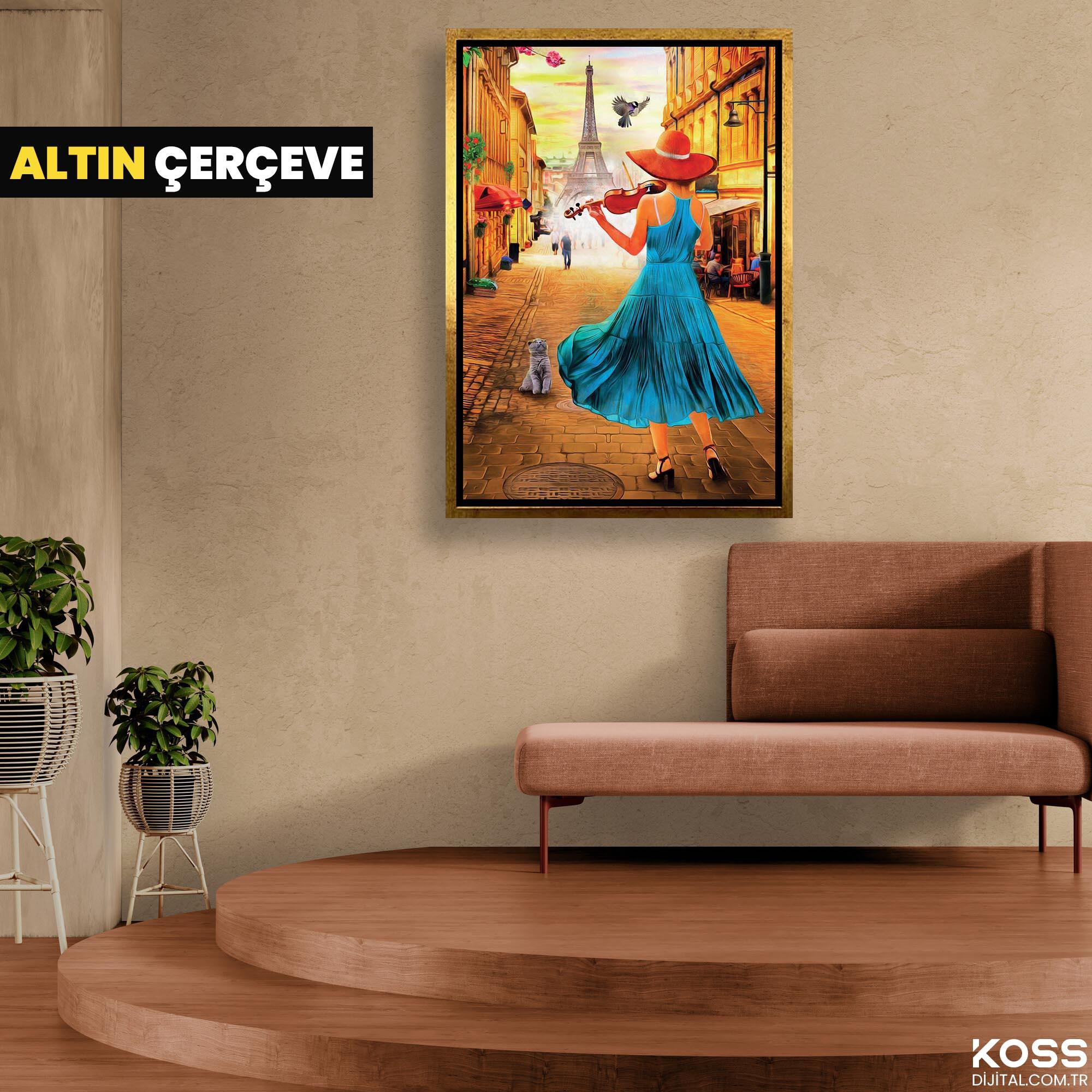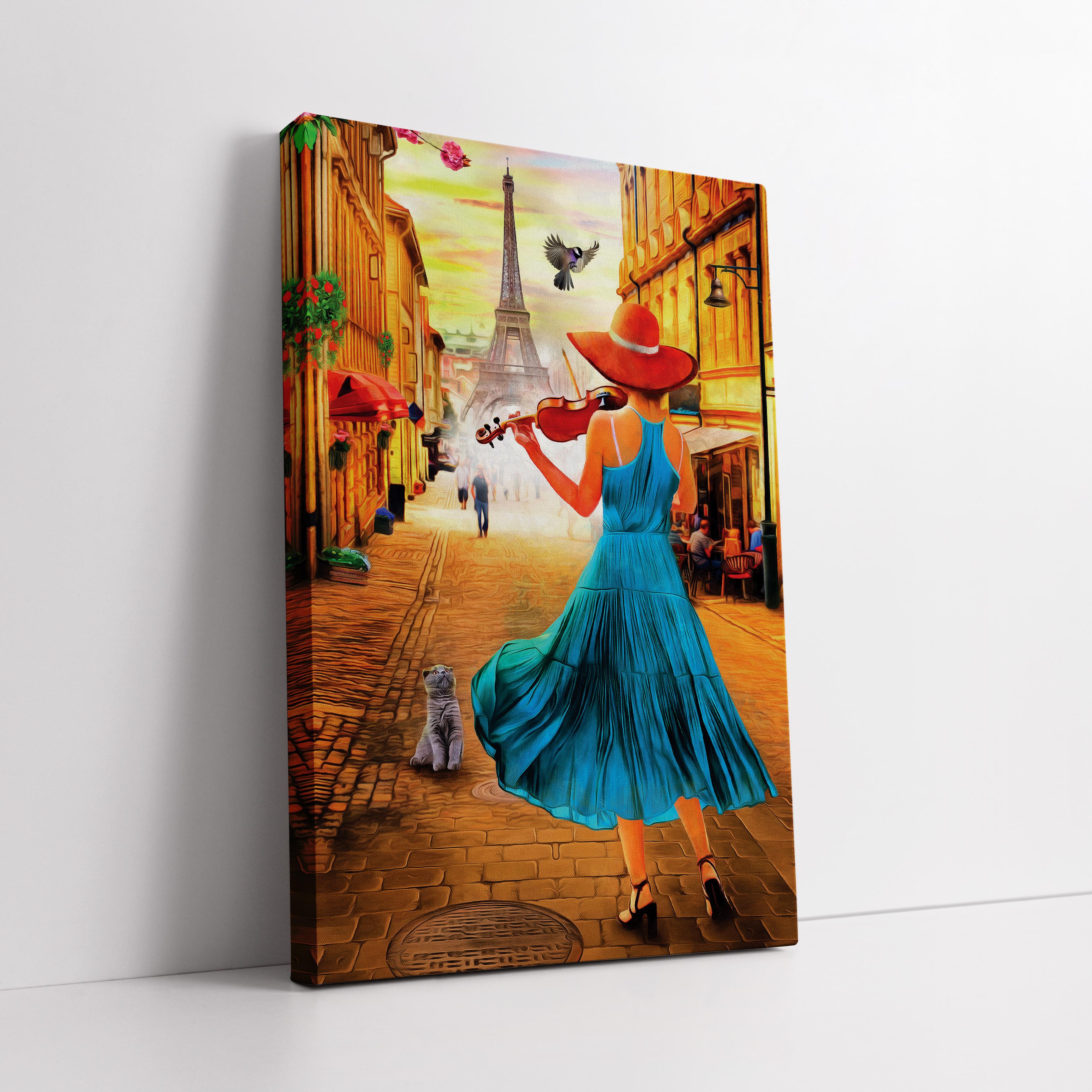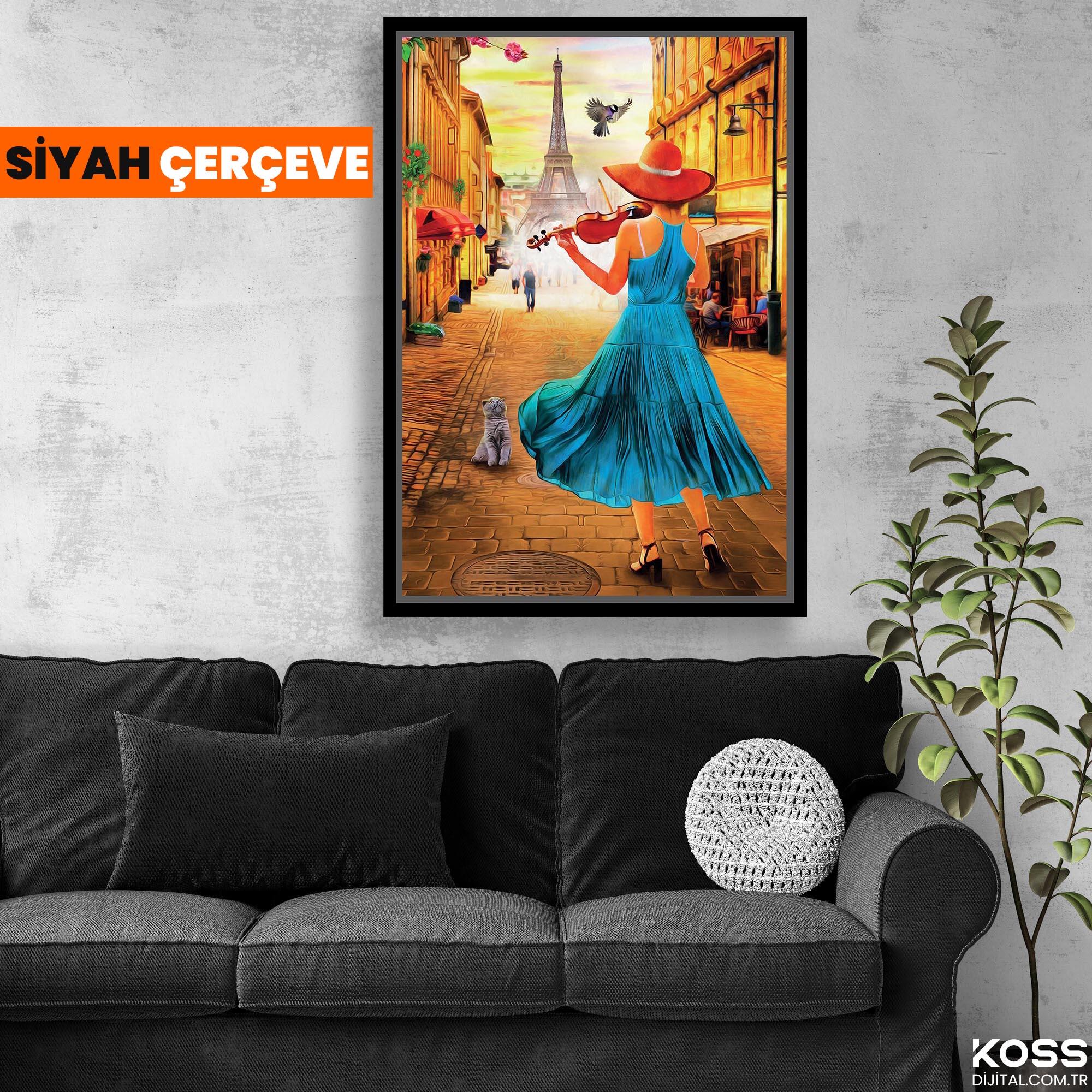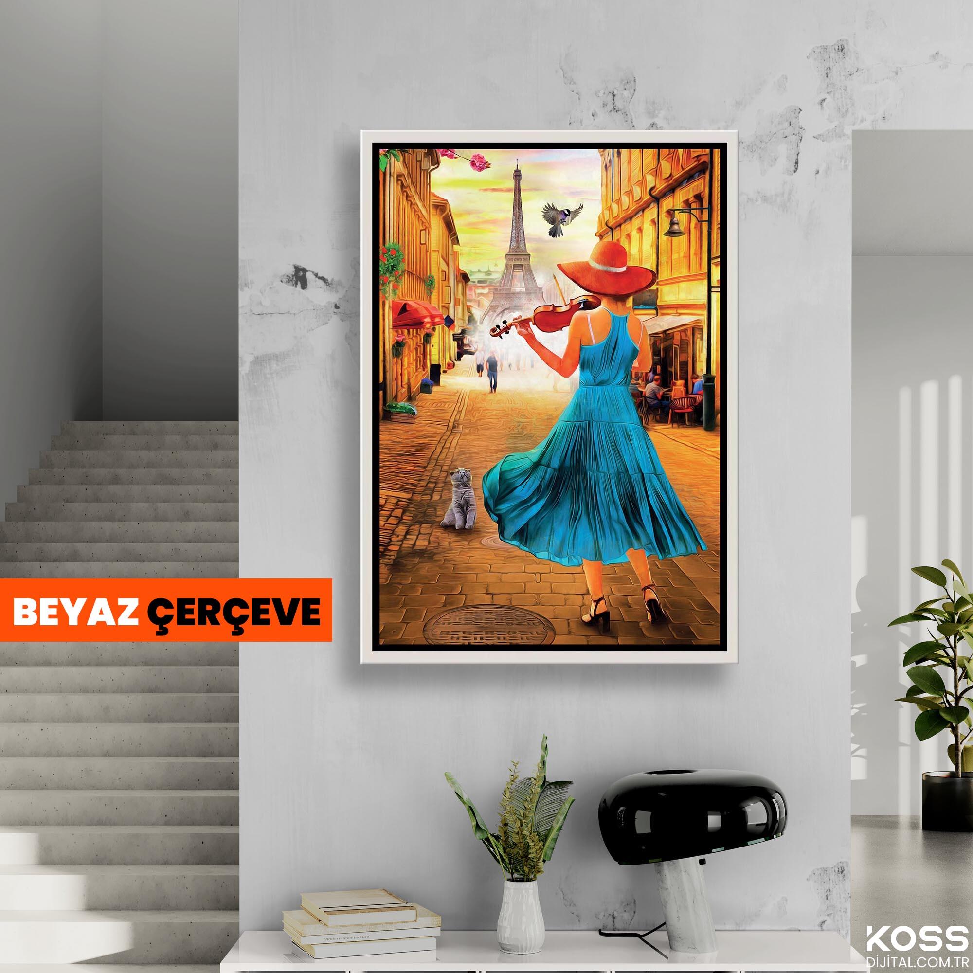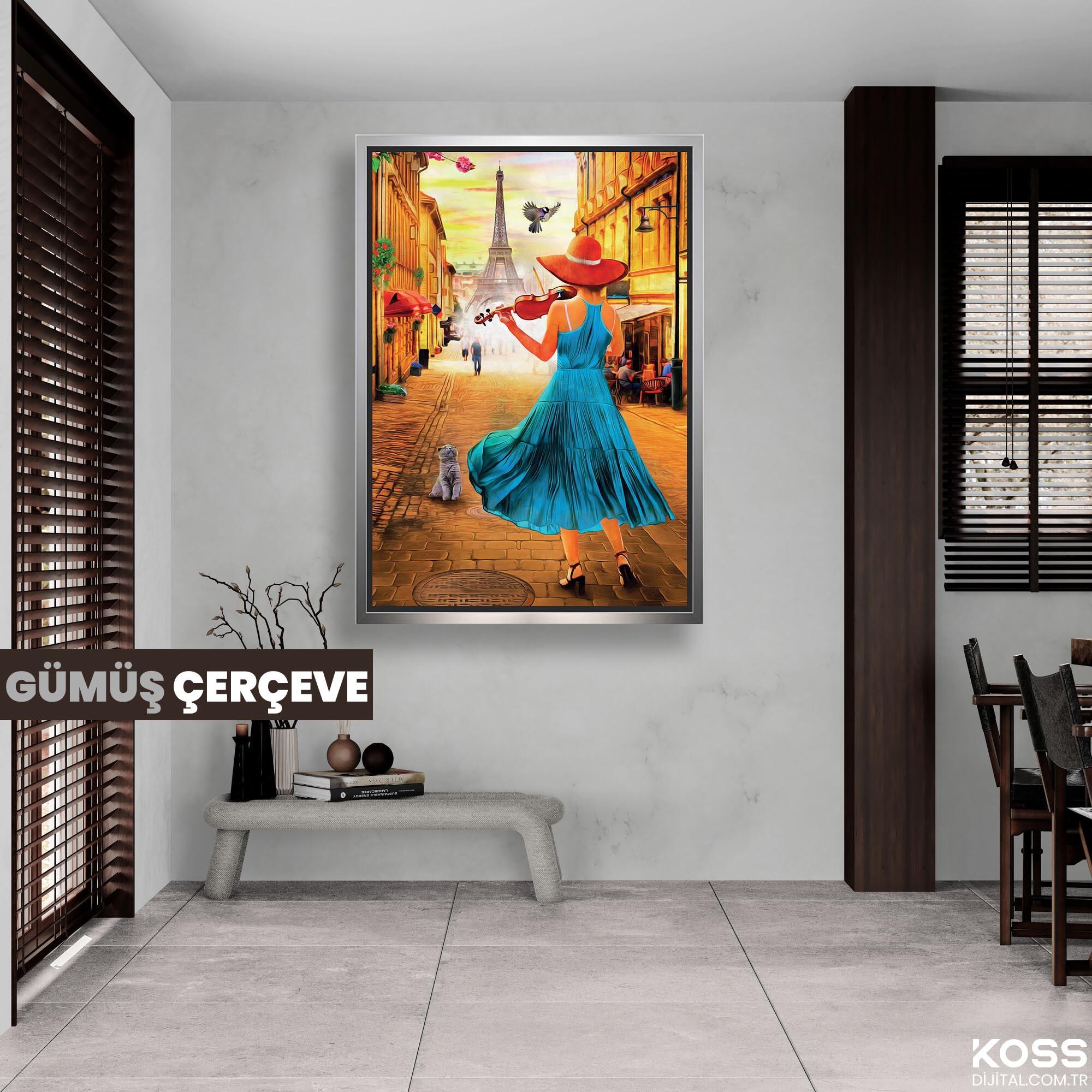 Paris Eyfel Sokağı Violin Çalan Kadın Kanvas Tablo (KSS-D-703)