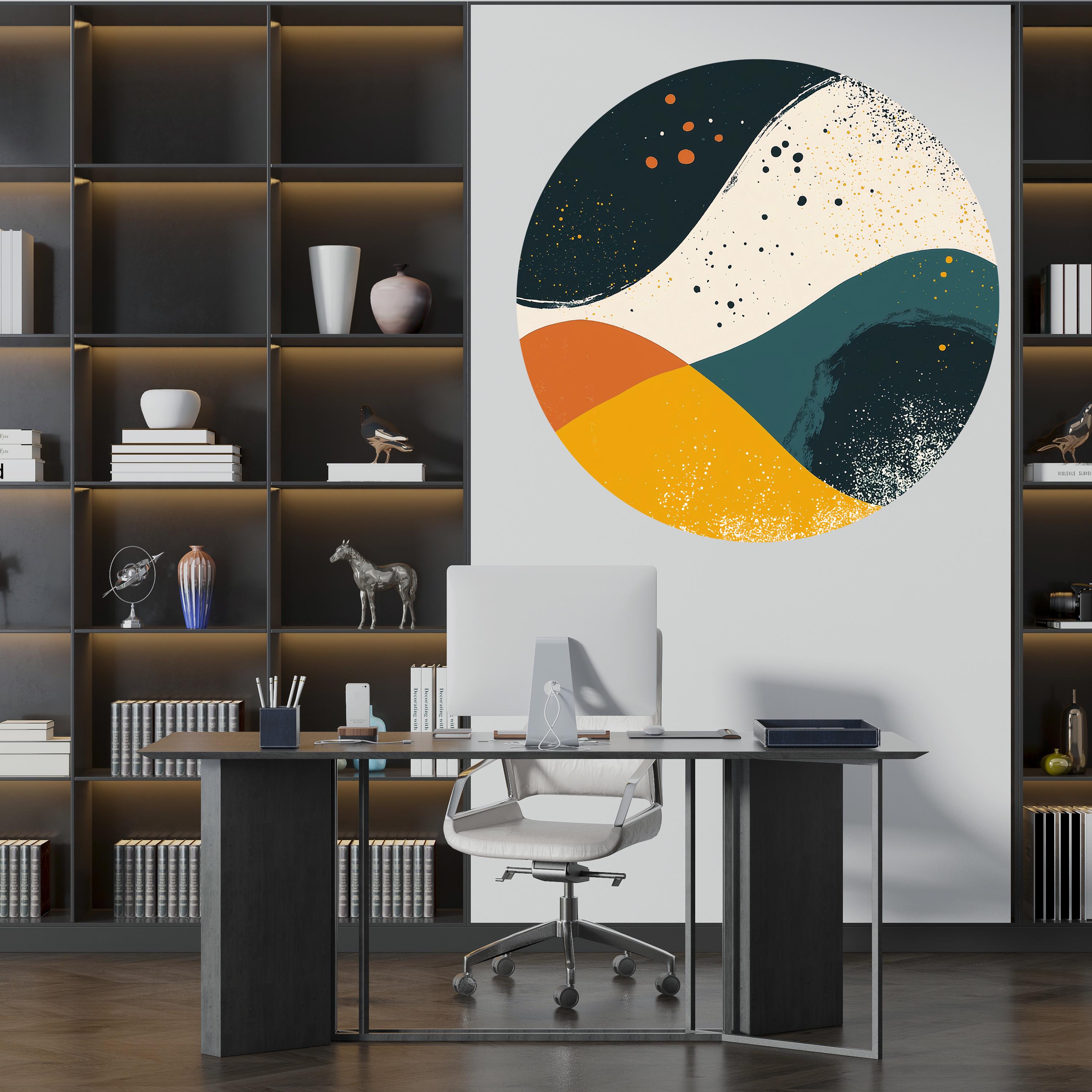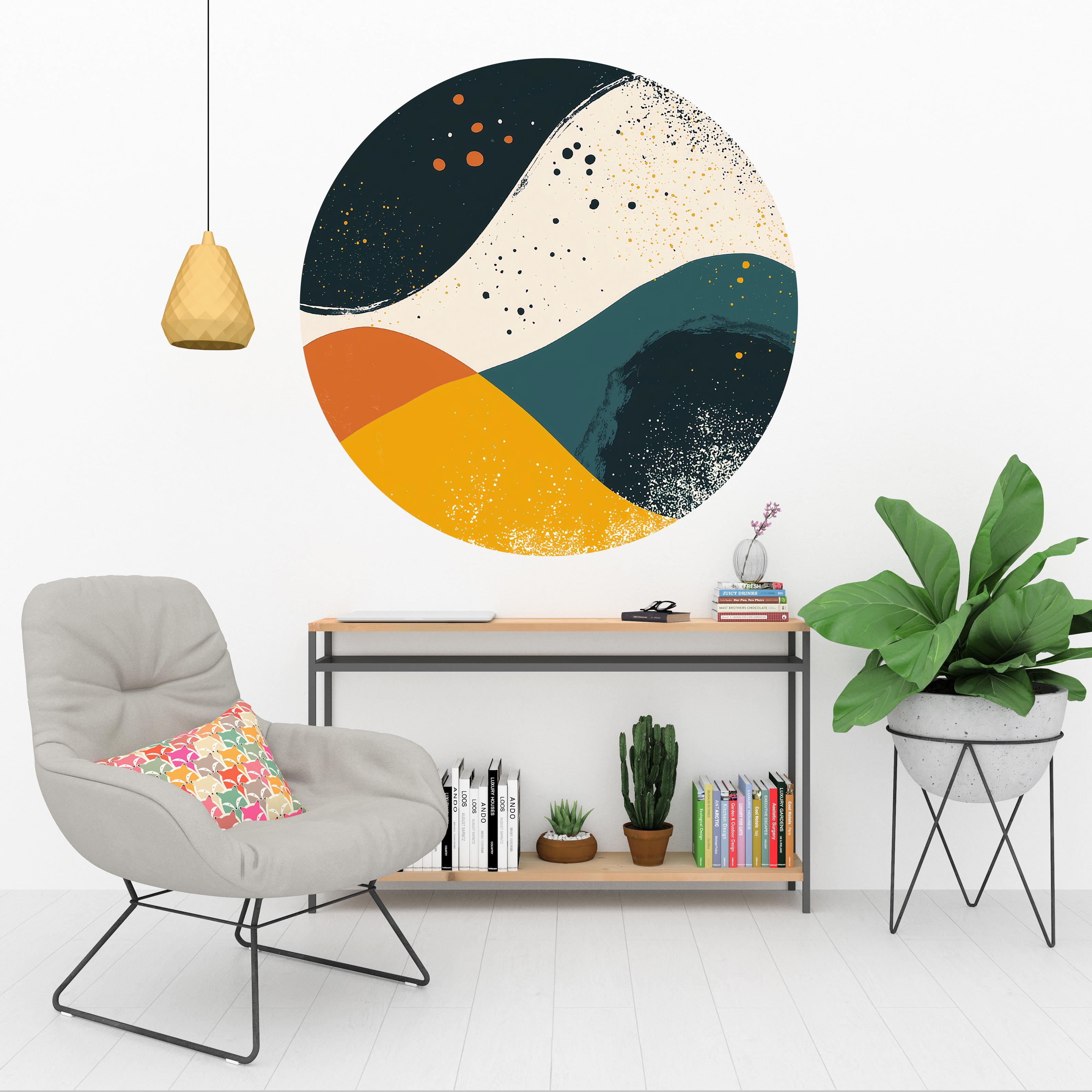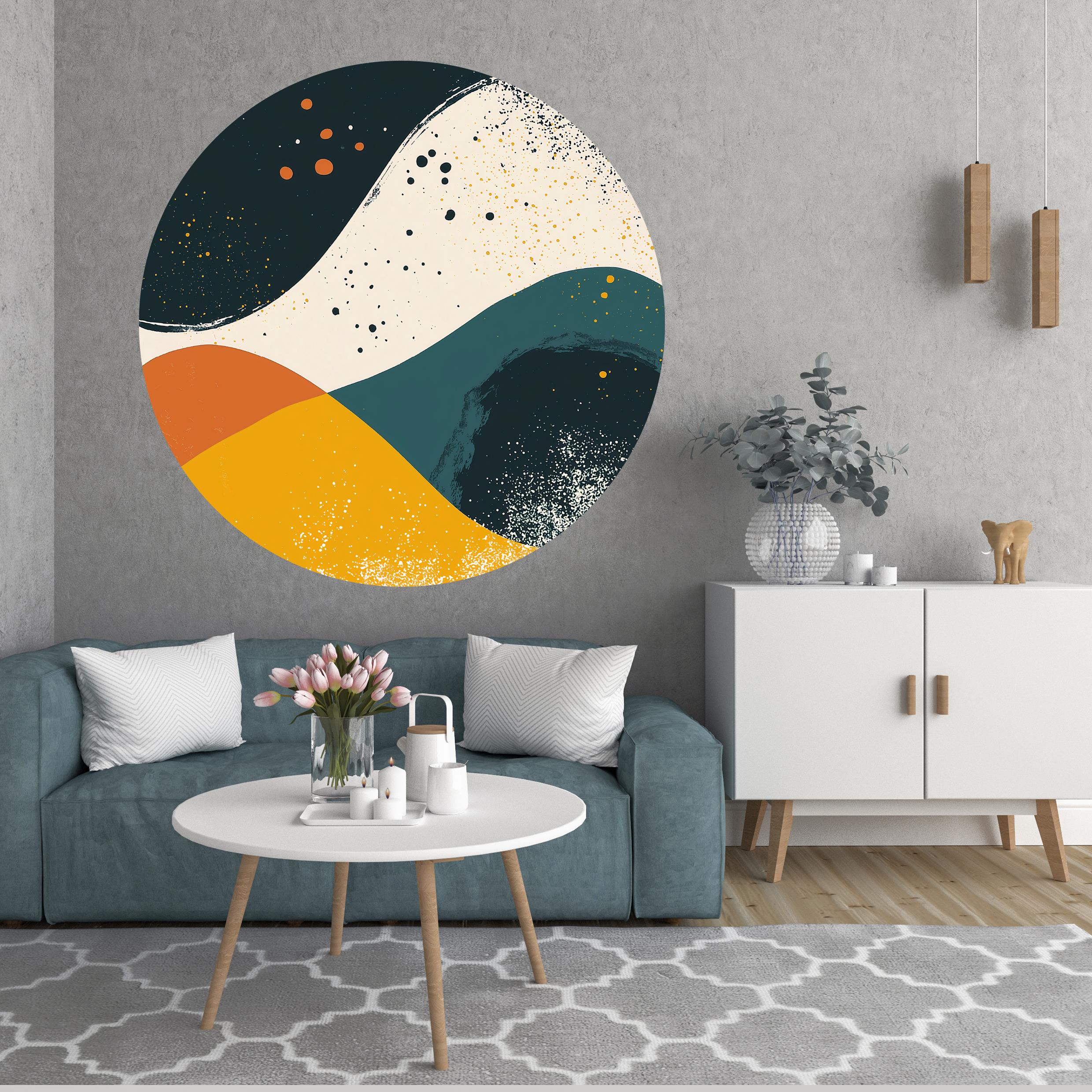 Pastel Renkli Şekiller Yuvarlak Sticker, Yuvarlak Şekilli Sticker, Minimal Modern Desenler Duvar Dekoru