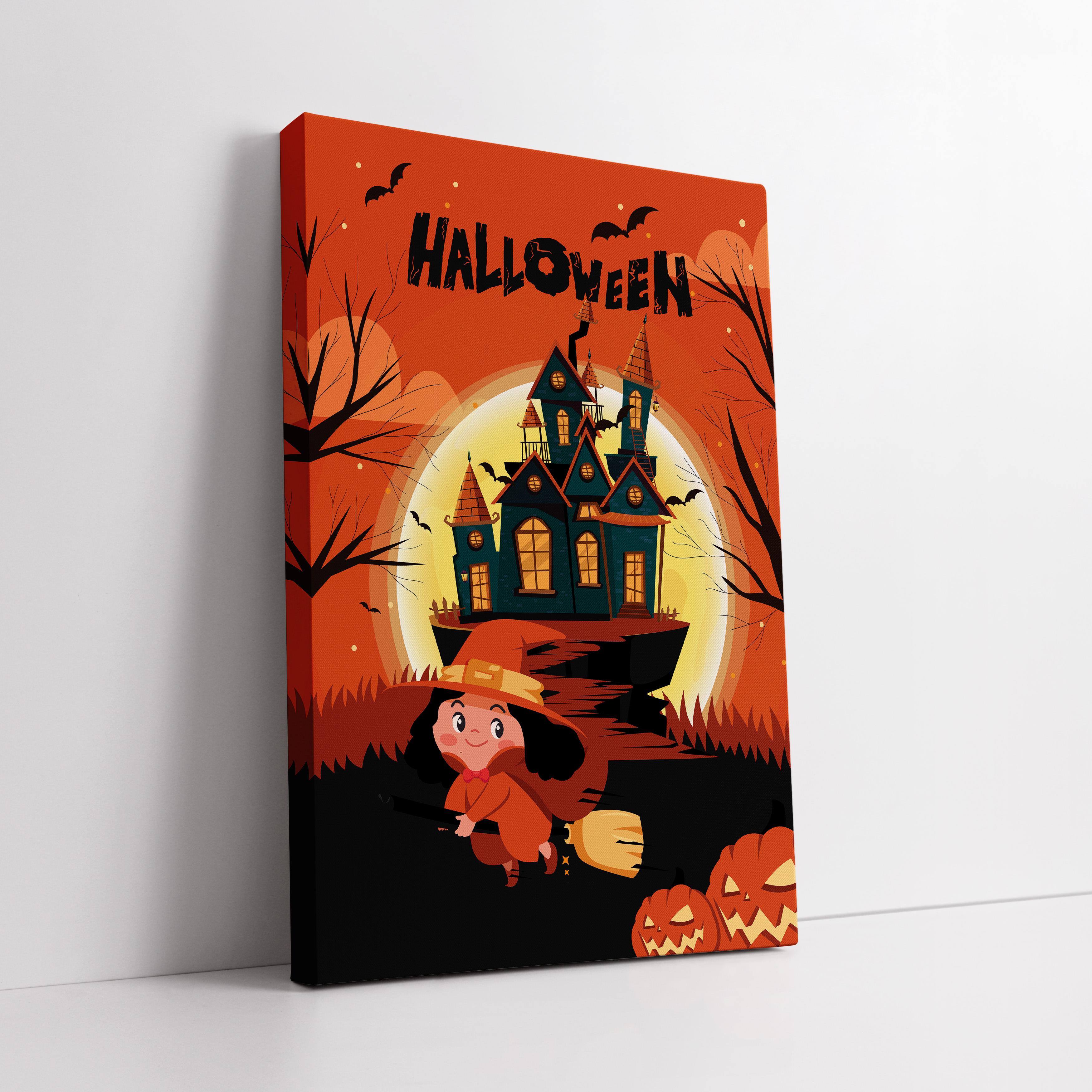 Renkli Cadılar Bayramı Şato Kanvas Tablo (KSS-D-855)
