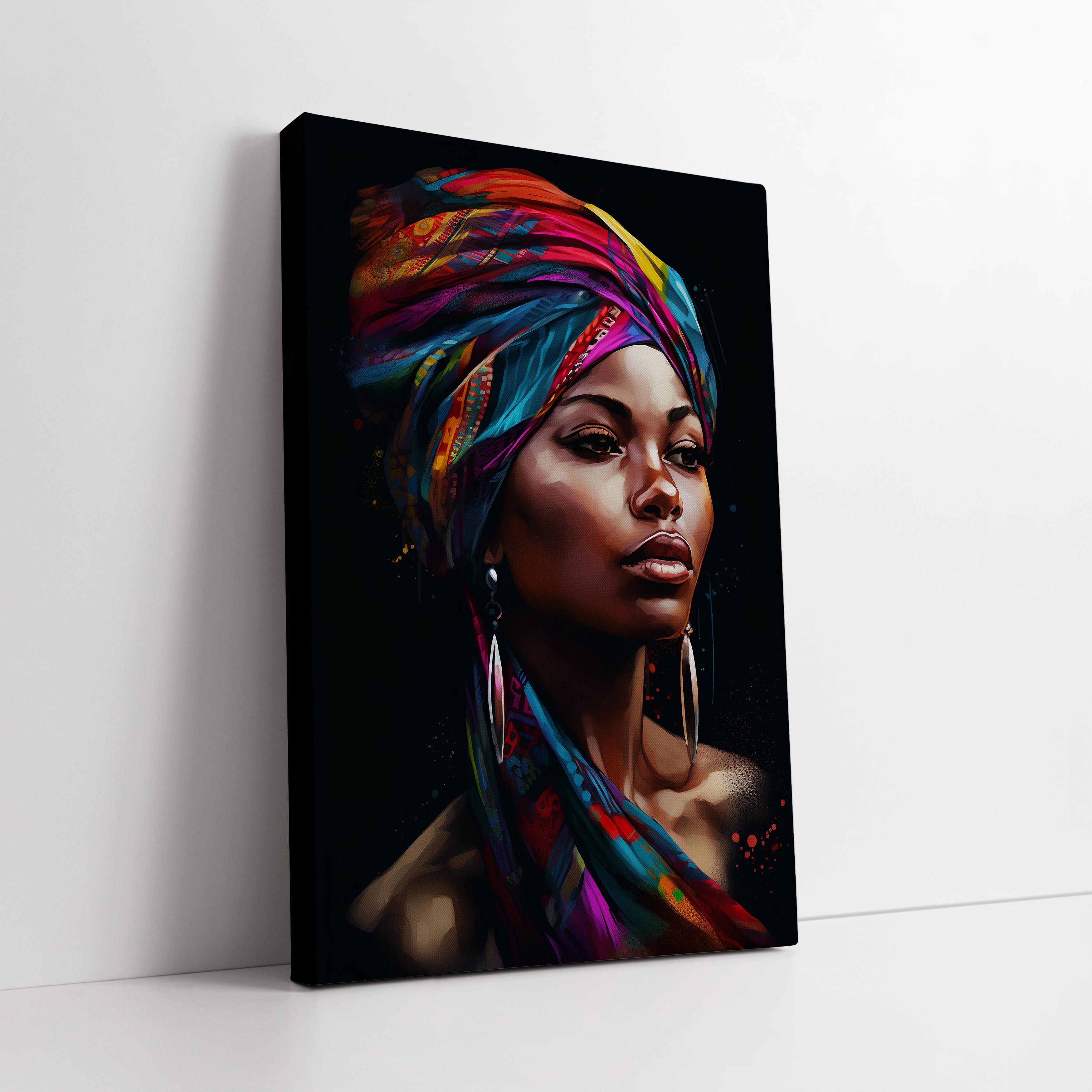 Renkli Eşarplı Afrikalı Kadın Kanvas Tablo (KSS-D-146)