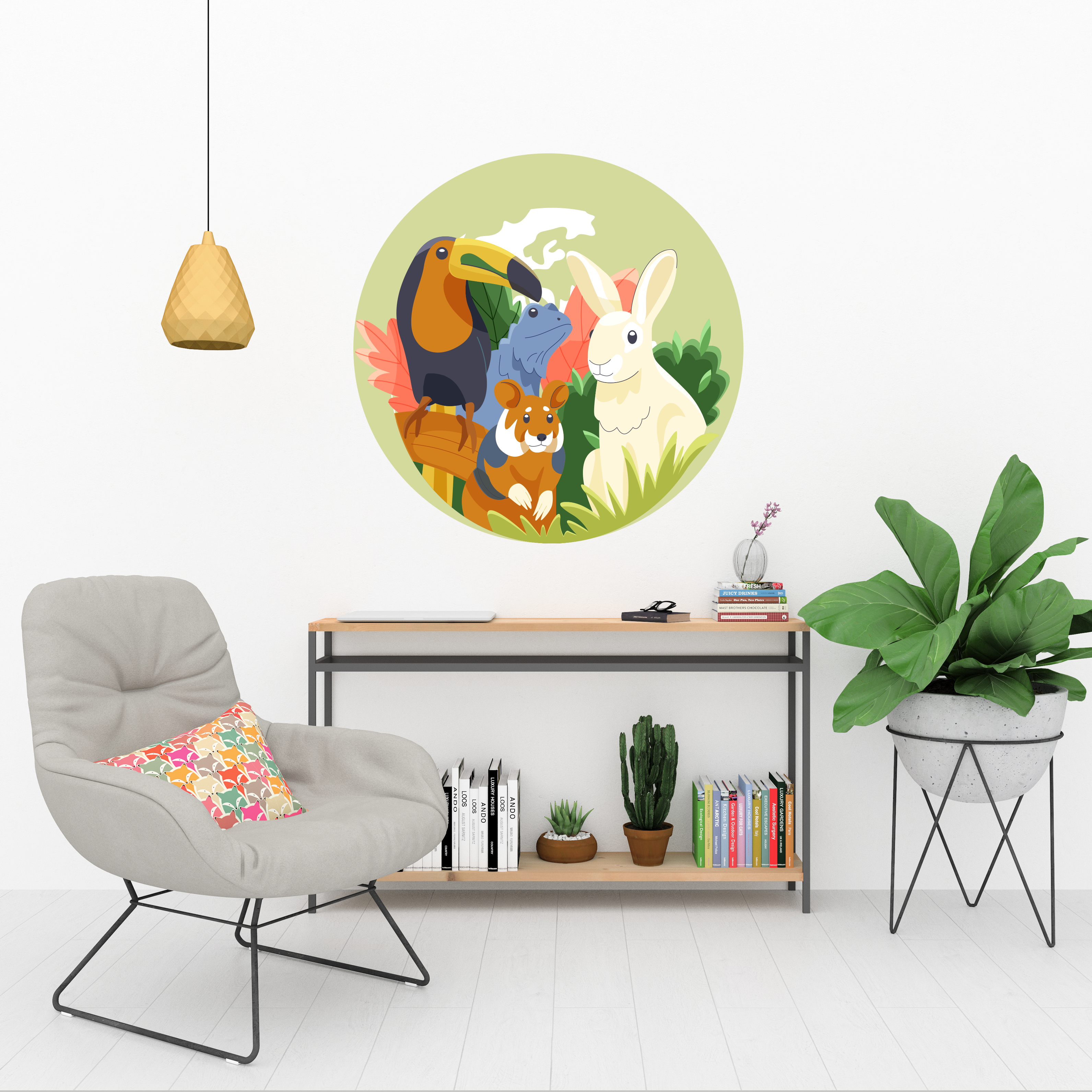 Renkli Sevimli Hayvanlar Yuvarlak Sticker, Yuvarlak Şekilli Duvar Stickerı, Çoçuk Odası İçin Duvar Dekoru (KSS-STCK-Y-36)
