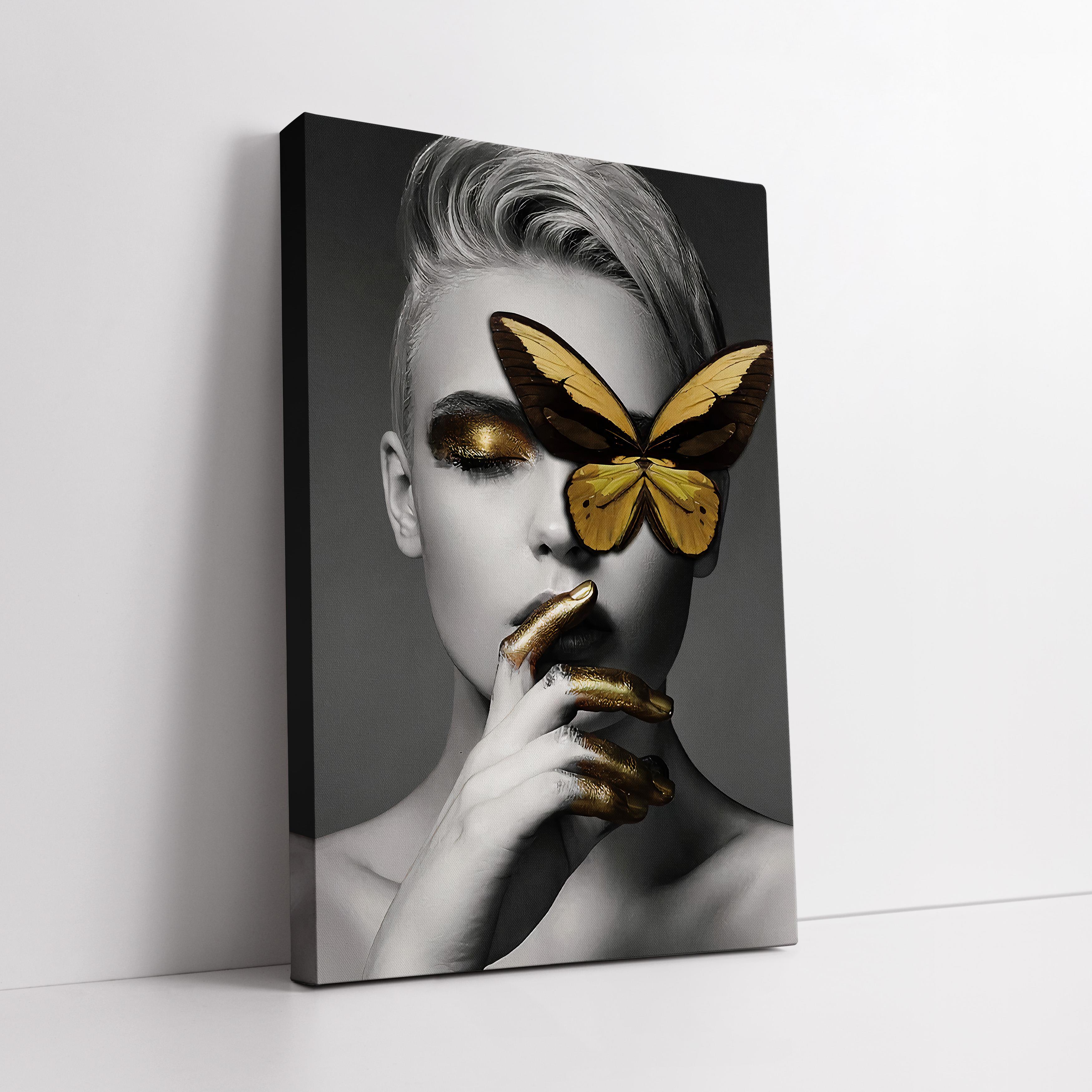 Sarı Kelebekli Kadın Kanvas Tablo (KSS-D-90)