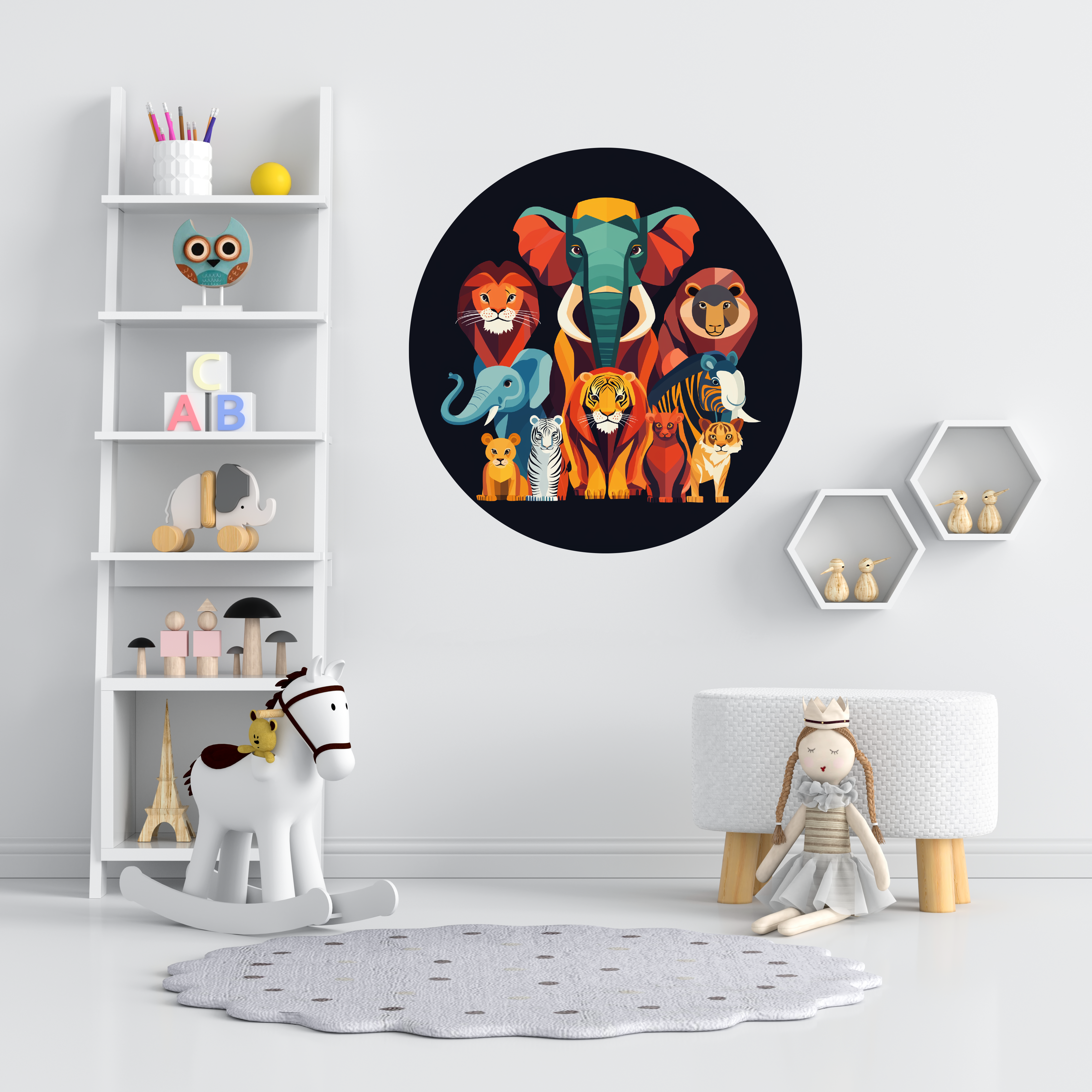 Sevimli Amazon Hayvanları Yuvarlak Sticker, Yuvarlak Şekilli Sticker, Çocuk Odası Duvar Dekoru