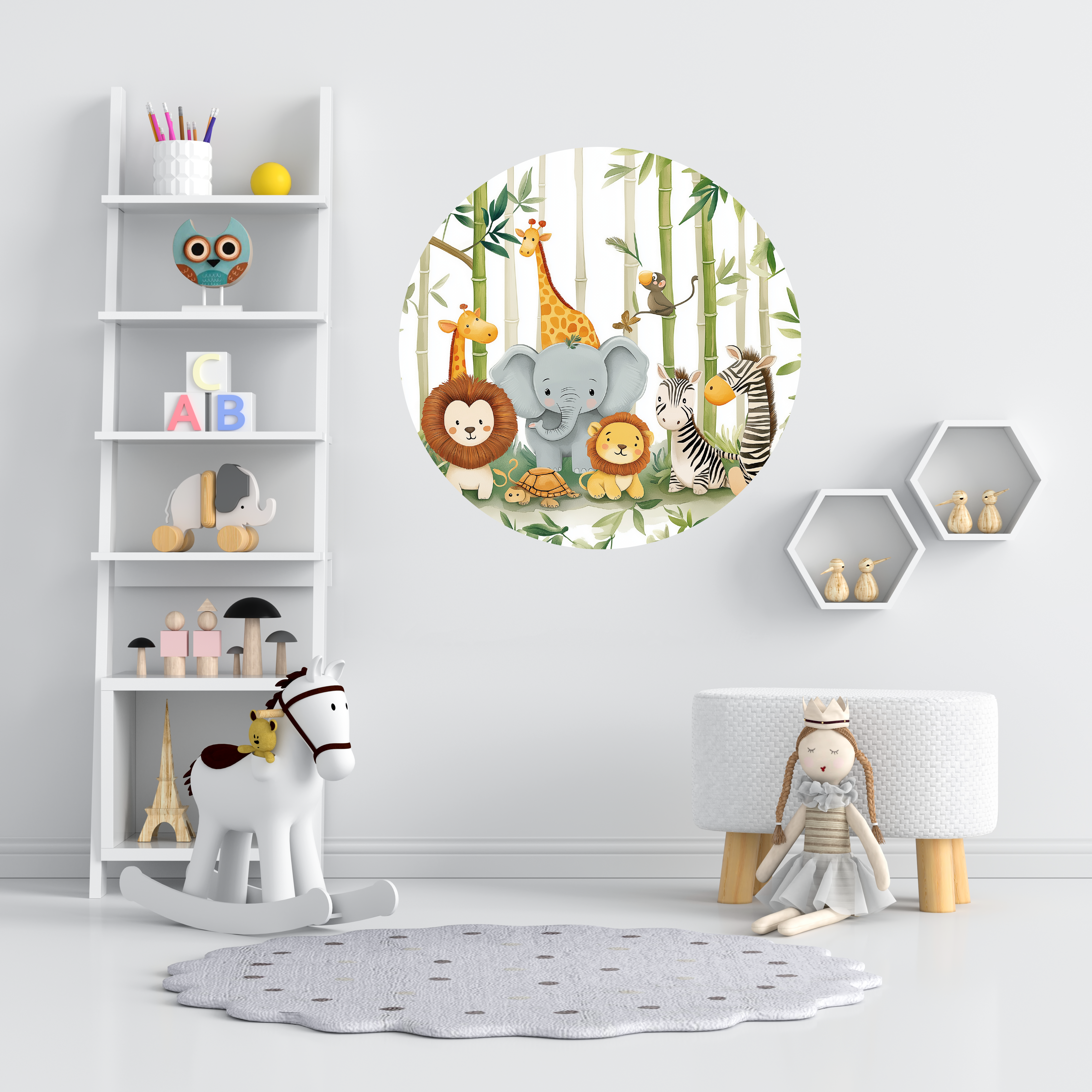 Sevimli Hayvanlar Pastel Renkler Yuvarlak Sticker, Yuvarlak Şekilli Sticker, Çocuk Odası Duvar Dekoru