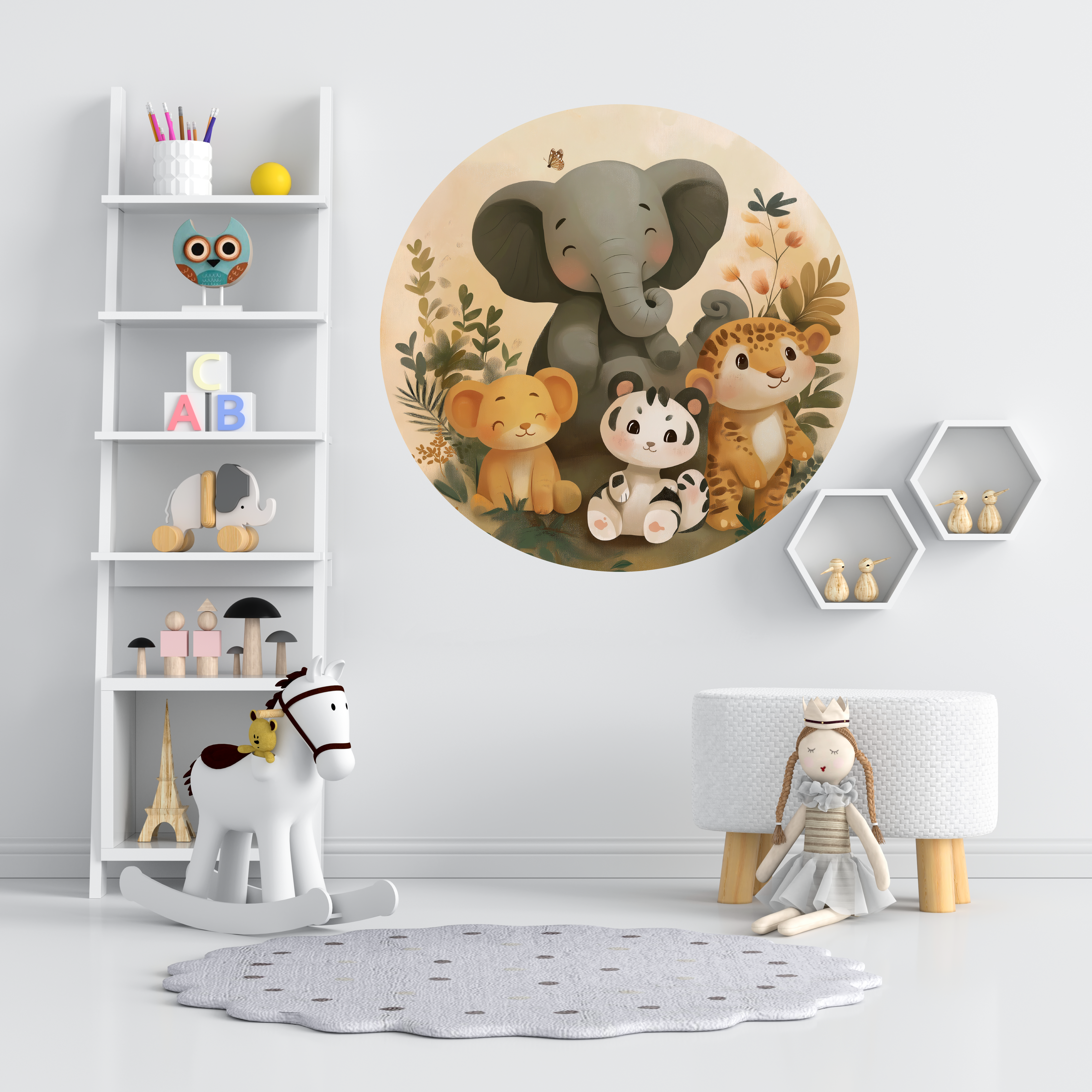 Sevimli Hayvanlar Safari Yuvarlak Sticker, Yuvarlak Şekilli Sticker, Çocuk Bebek Odası Duvar Dekoru