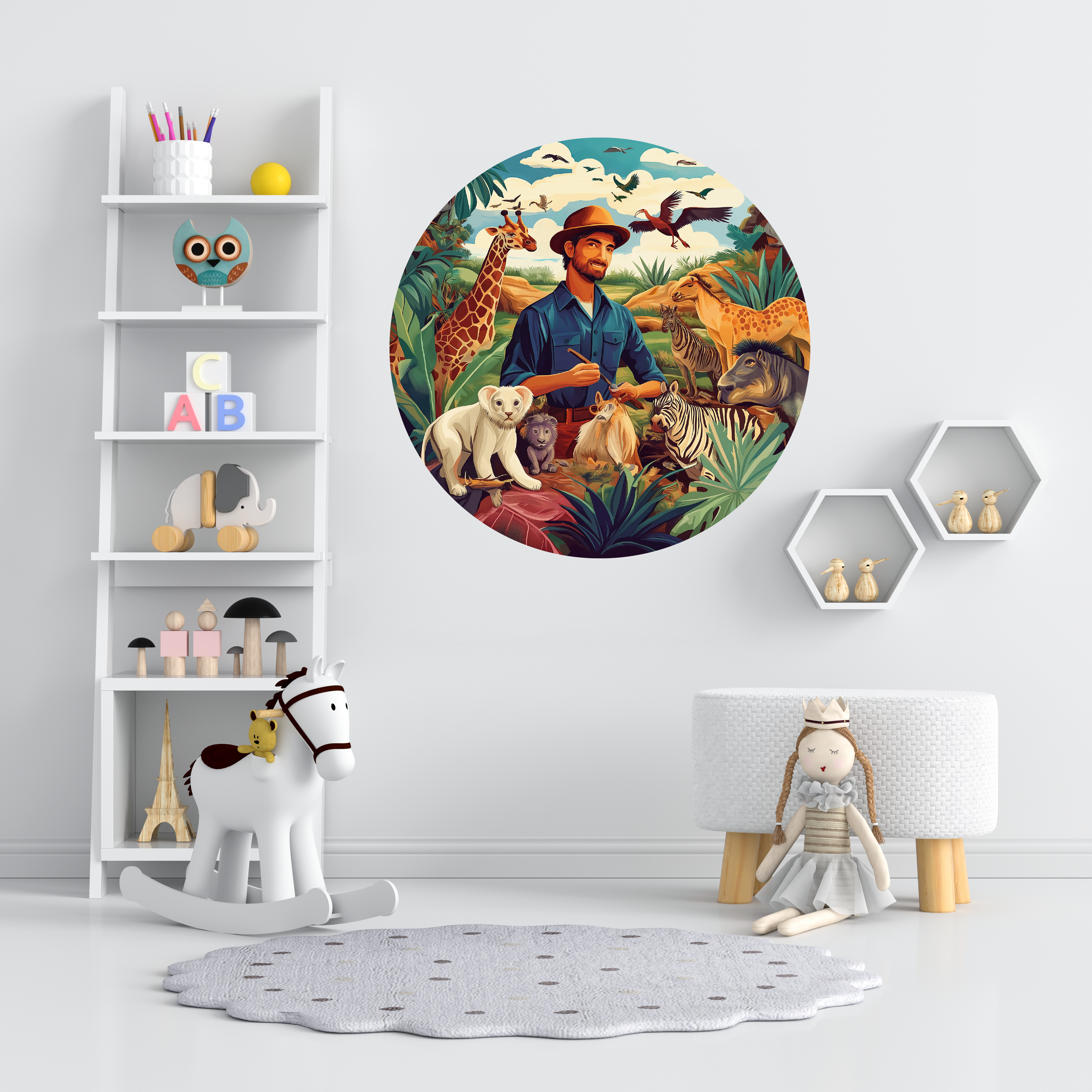 Sevimli Hayvanlar ve Orman Yuvarlak Sticker, Yuvarlak Şekilli Yapışkanlı Sticker, Renkli Çocuk Odası Duvar Dekoru (KSS-STCK-Y-48)