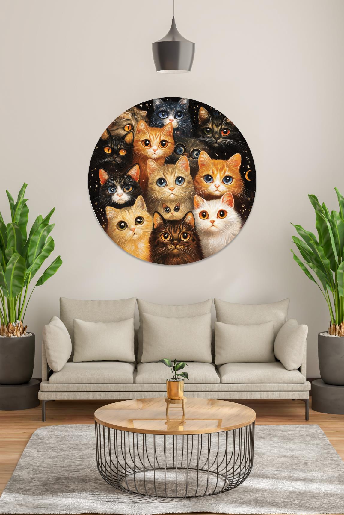 Sevimli Kediler Yuvarlak Sticker, Yuvarlak Şekilli Sticker, Soyut Tatlı Hayvanlar Duvar Dekoru