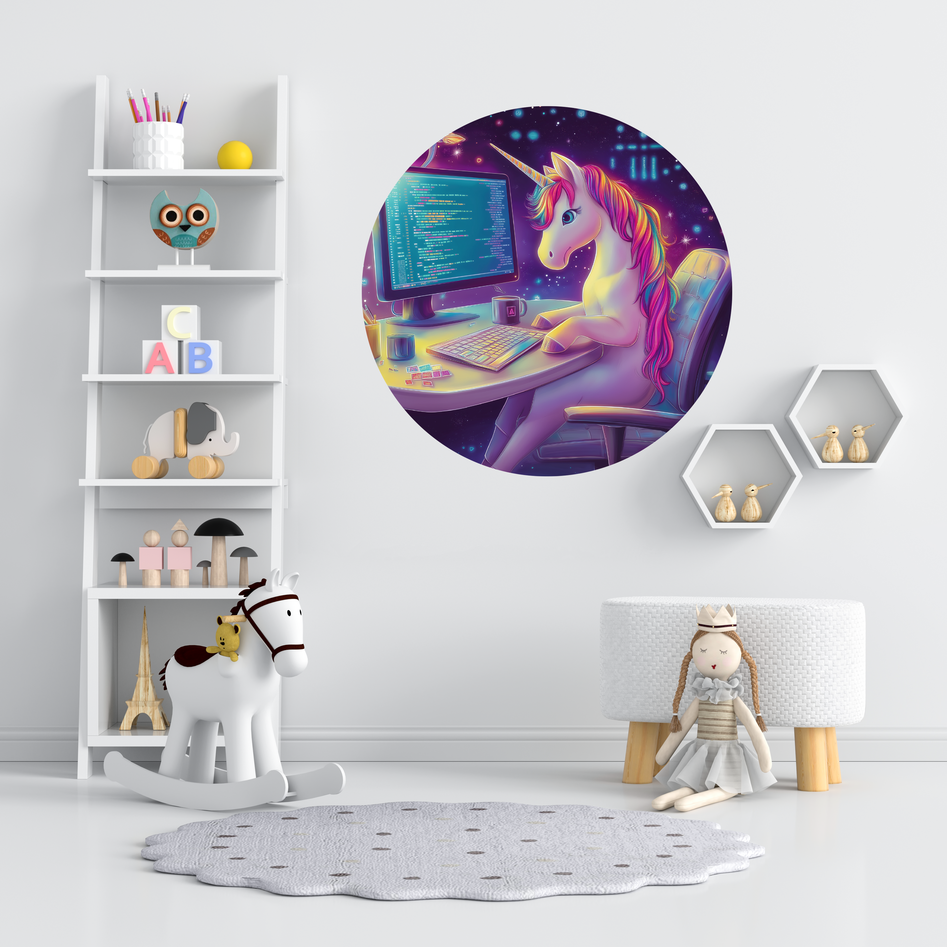 Sevimli Unicorn Anime Yuvarlak Sticker, Yuvarlak Şekilli Sticker, Renkli Genç Çocuk Bebek Odası Duvar Dekoru