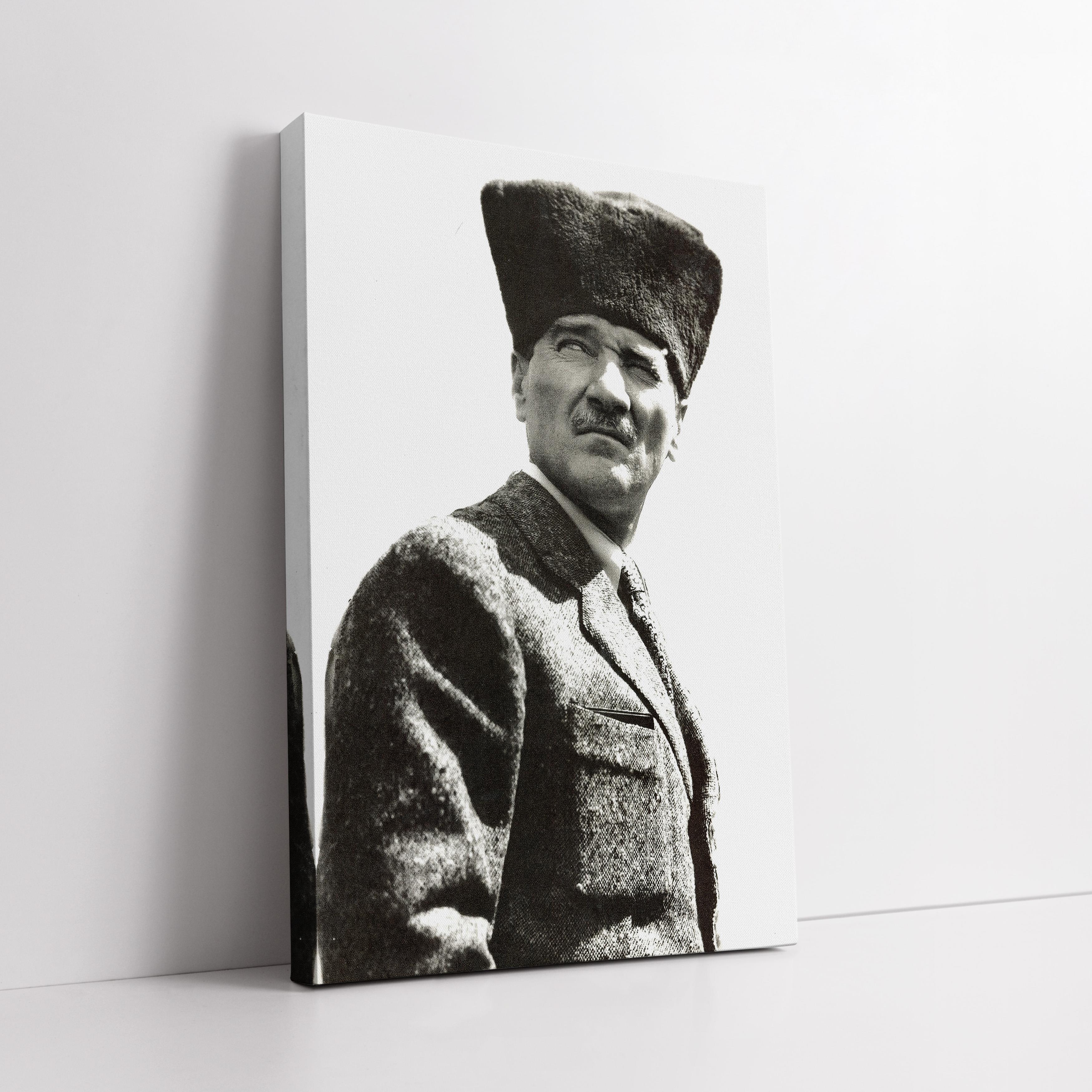 Siyah Beyaz Gazi Atatürk Renklendirilmiş Kanvas Tablo (KSS-D-599)