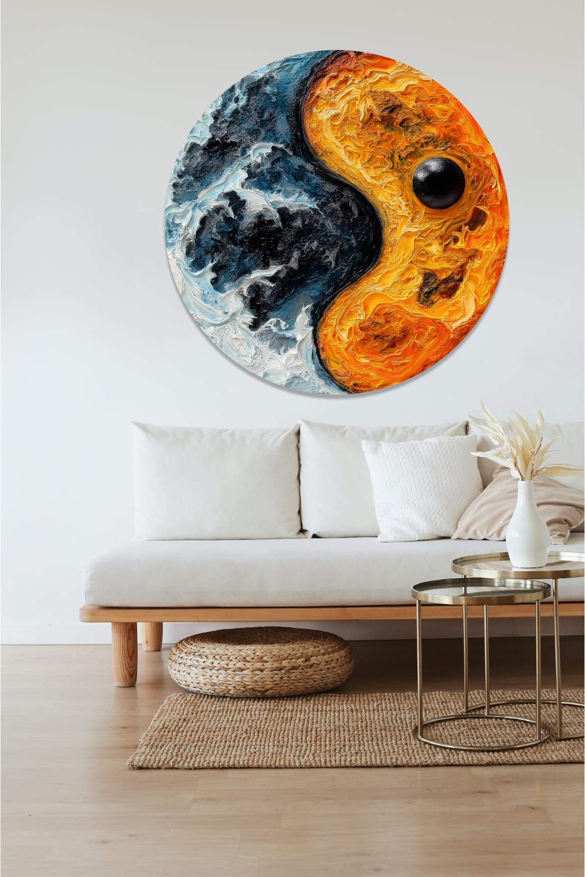 Soyut Ateş ve Su Yuvarlak Sticker, Yuvarlak Şekilli Sticker, Yin ile Yang Tarzı Renkli Duvar Dekoru