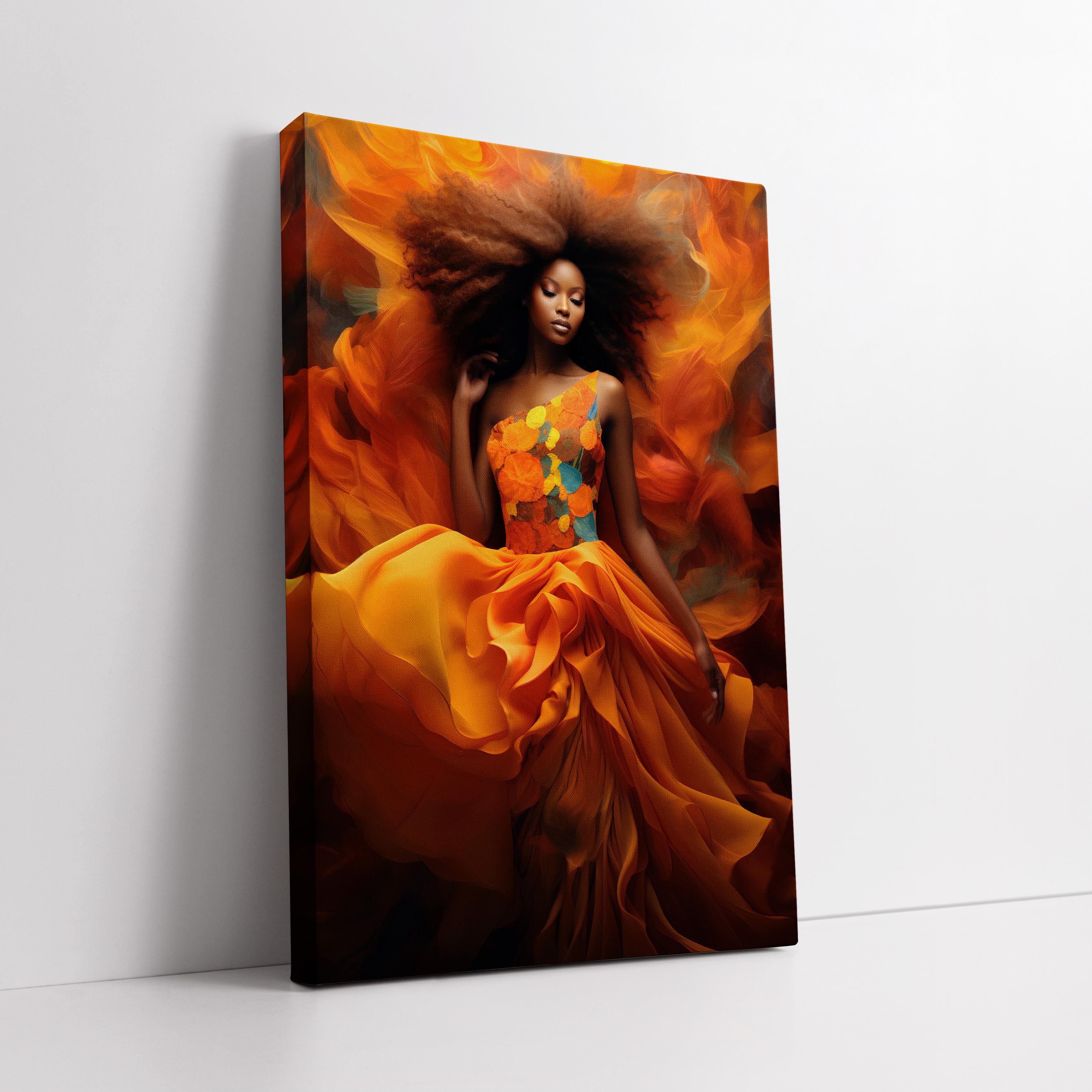 Turuncu Elbiseli Siyahi Kadın Kanvas Tablo (KSS-D-120)