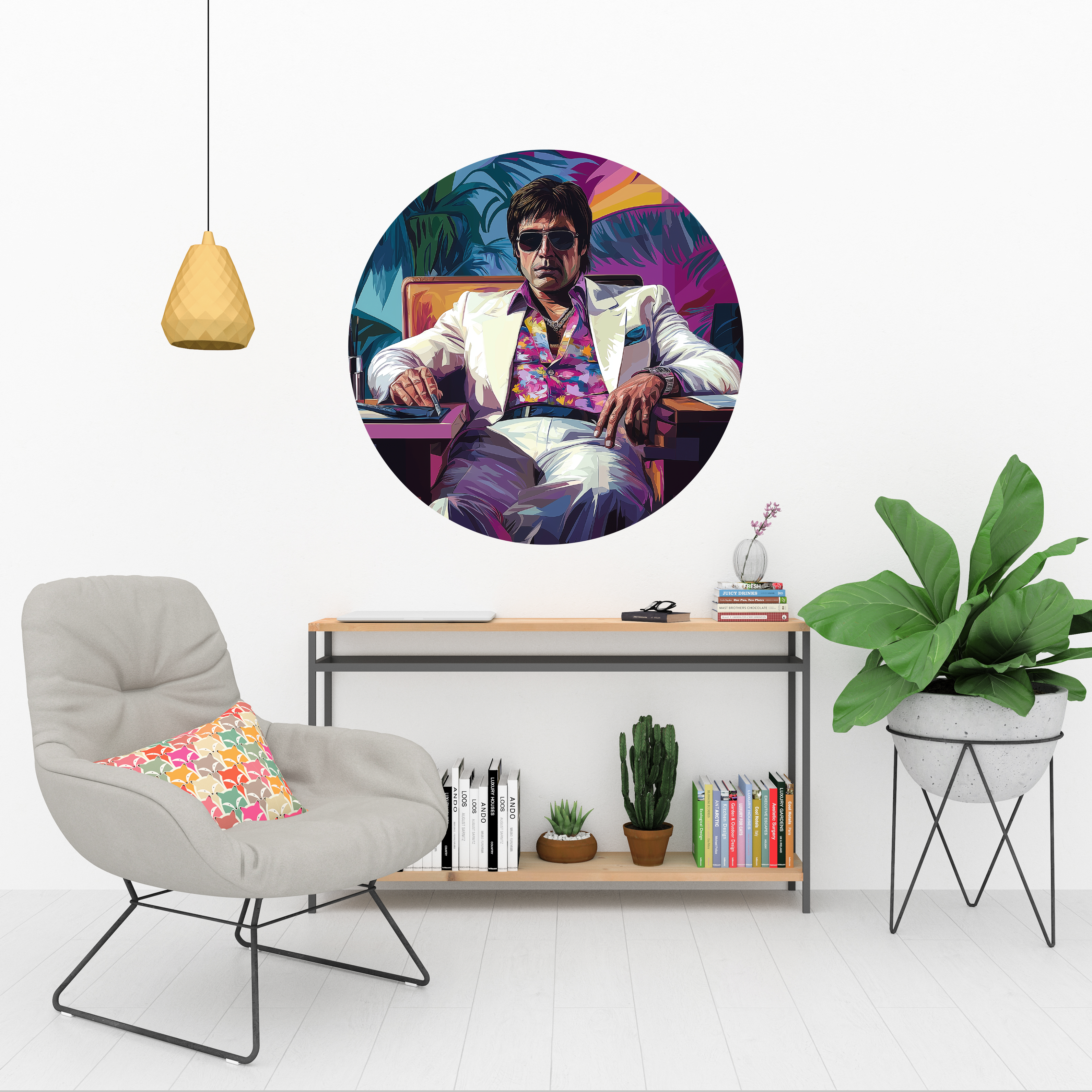 Ünlü Tony Montana Yuvarlak Sticker, Yuvarlak Şekilli Sticker, Genç Odası Duvar Dekoru